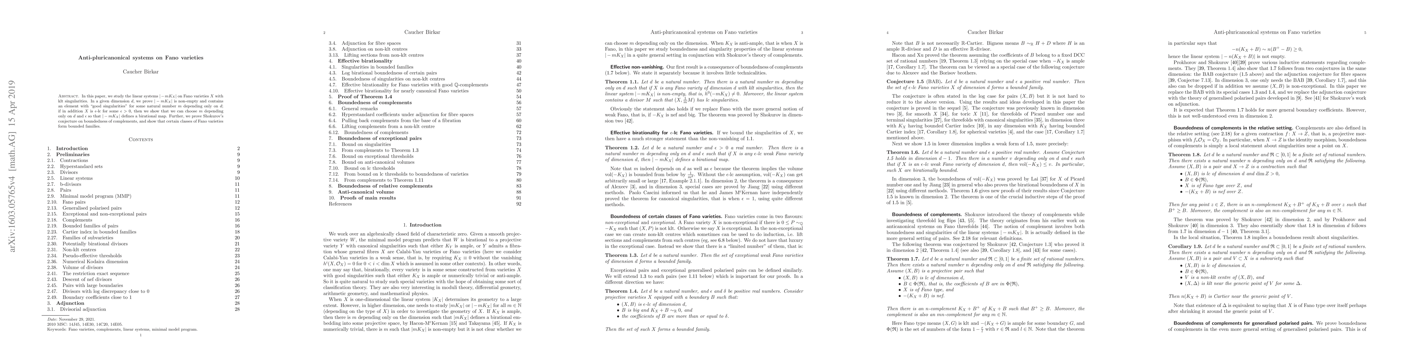 This research paper investigates linear systems on Fano varieties with klt singularities, proving the existence of elements with good singularities in |-mK_X| for a natural number m dependent only on dimension d. For epsilon-lc Fano varieties, it ensures m depends only on d and epsilon, enabling |-mK_X| to define a birational map. The study also confirms Shokurov's conjecture on boundedness of complements and demonstrates that specific Fano variety classes form bounded families.