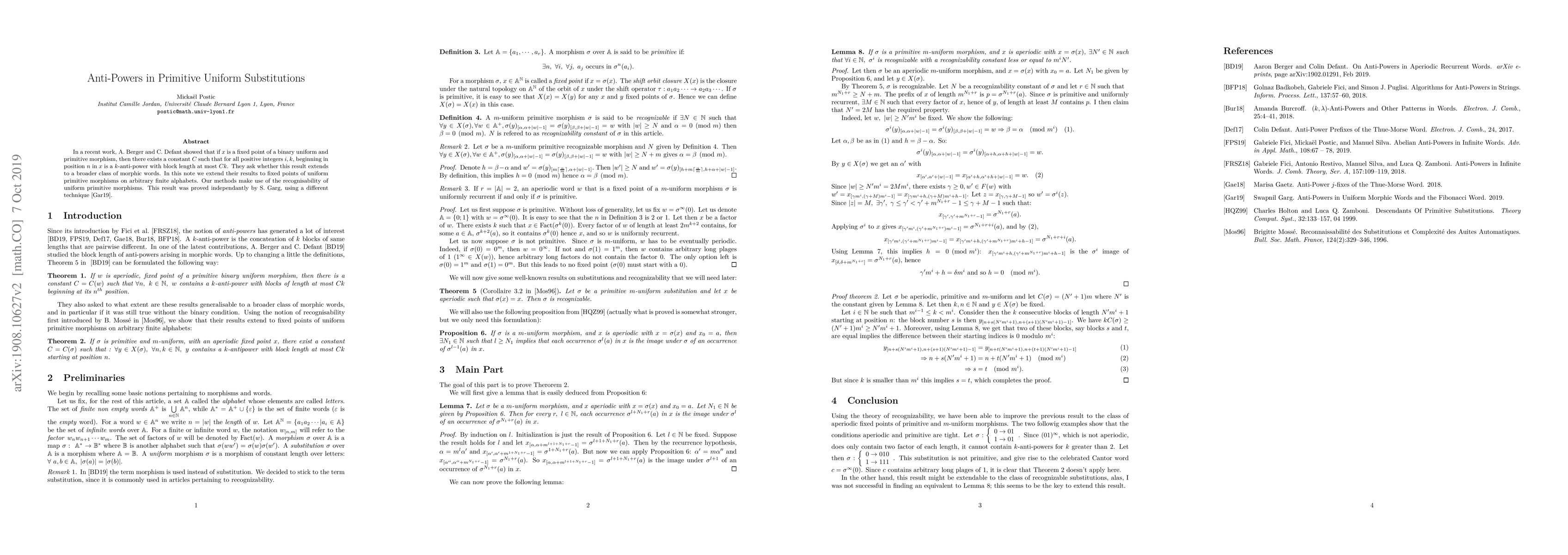 The paper demonstrates that recognizability of uniform primitive morphisms can be used to extend results on anti-powers in morphic words.