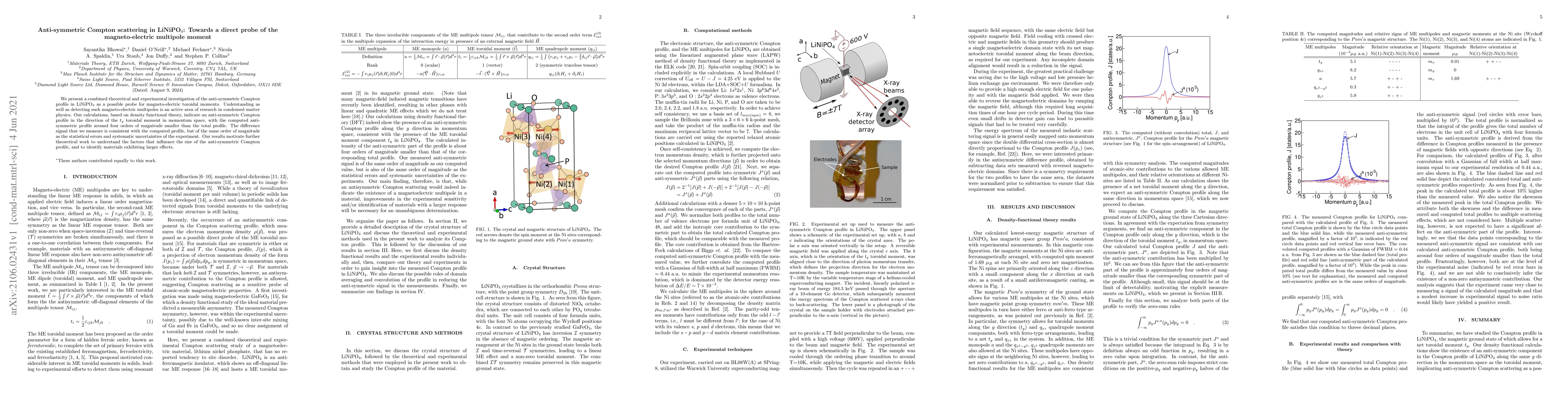 Researchers investigated anti-symmetric Compton scattering in LiNiPO$_4$ to detect magneto-electric toroidal moments, finding a difference signal consistent with theoretical predictions but within statistical errors of the experiment.