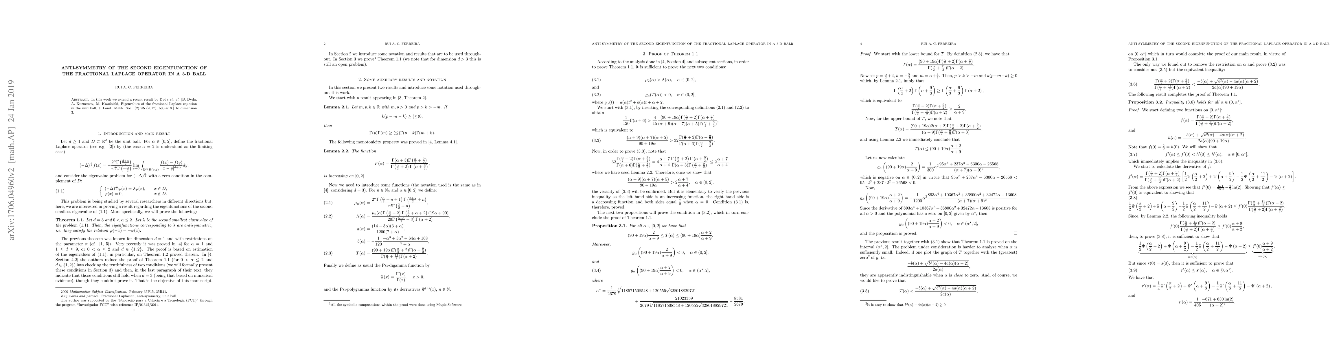 This paper extends the anti-symmetry property of the second eigenfunction of the fractional Laplace operator from 2D to 3D within a ball, building on prior work by Dyda et al. in lower dimensions.