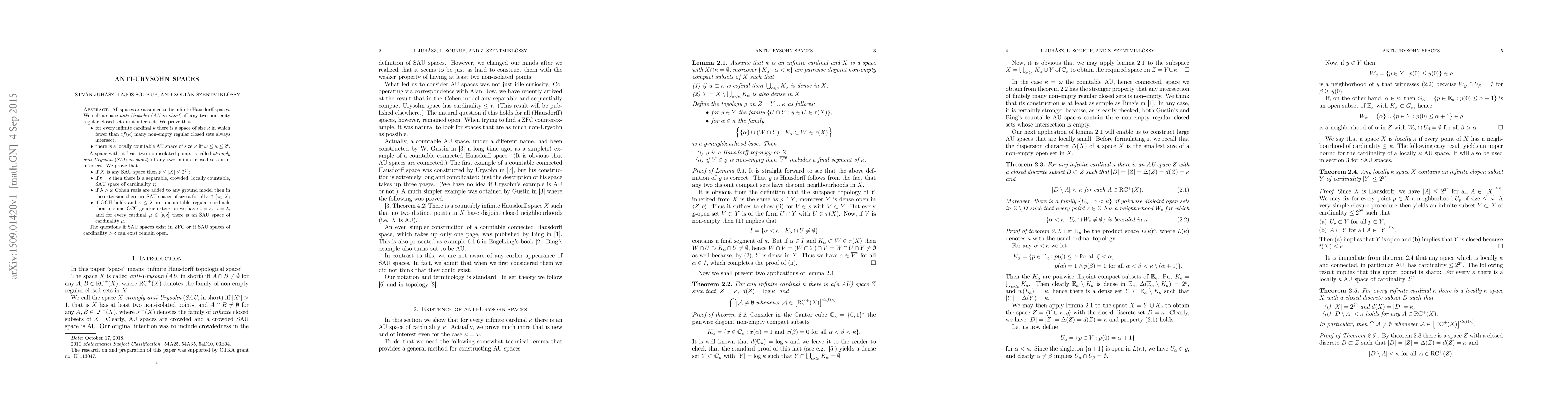 This paper explores the properties of "anti-Urysohn" (AU) and "strongly anti-Urysohn" (SAU) spaces, focusing on their cardinalities and intersection properties. It proves the existence of AU spaces of any infinite cardinal with fewer than cf(κ) intersecting non-empty regular closed sets. It also establishes conditions for the existence of locally countable AU spaces and provides bounds for SAU spaces, including their cardinality under certain set-theoretic assumptions.