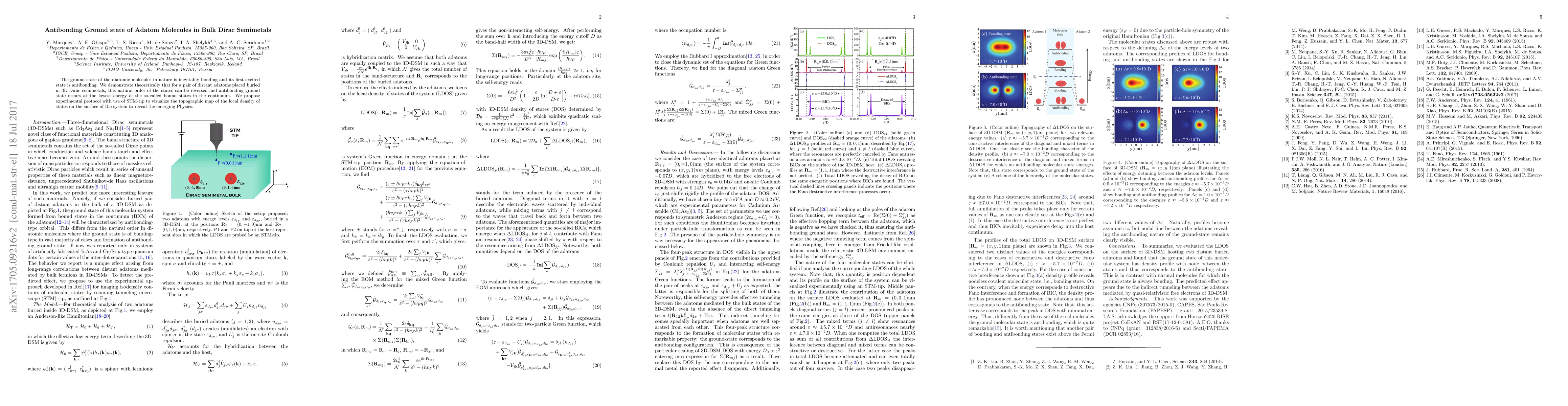 This paper theoretically demonstrates that adatom molecules buried in three-dimensional Dirac semimetals can exhibit an antibonding ground state, reversing the natural bonding-antibonding order. It proposes using a scanning tunneling microscope to visualize the local density of states and confirm this unique electronic behavior.
