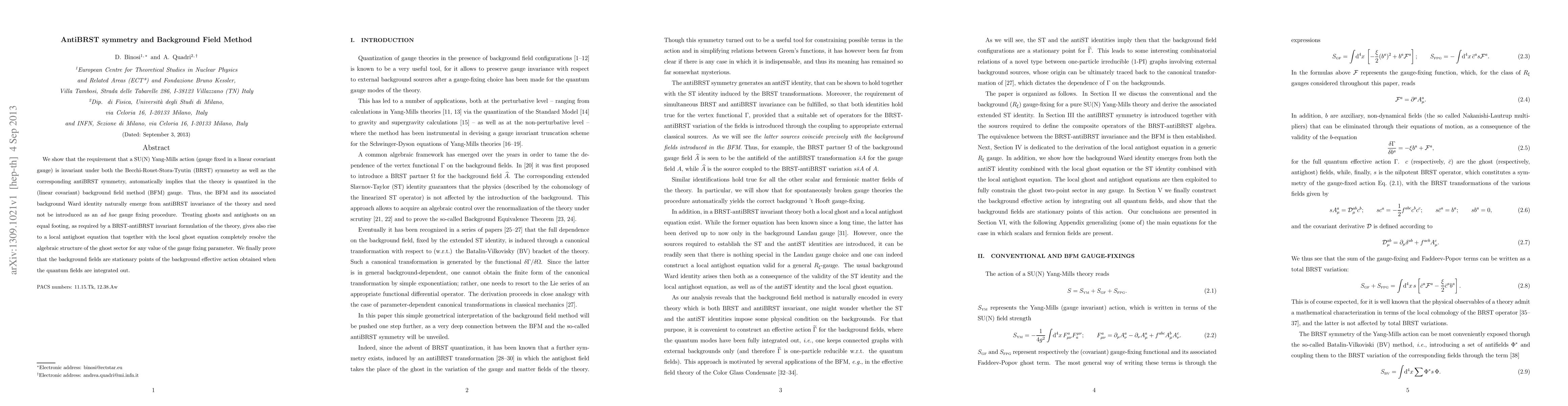 We show that the requirement that a SU(N) Yang-Mills action (gauge fixed in a linear covariant gauge) is invariant under both the Becchi-Rouet-Stora-Tyutin (BRST) symmetry as well as the corresponding antiBRST symmetry, automatically implies that the theory is quantized in the (linear covariant) background field method (BFM) gauge. Thus, the BFM and its associated background Ward identity naturally emerge from antiBRST invariance of the theory and need not be introduced as an ad hoc gauge fixing procedure. Treating ghosts and antighosts on an equal footing, as required by a BRST-antiBRST invariant formulation of the theory, gives also rise to a local antighost equation that together with the local ghost equation completely resolve the algebraic structure of the ghost sector for any value of the gauge fixing parameter. We finally prove that the background fields are stationary points of the background effective action obtained when the quantum fields are integrated out.