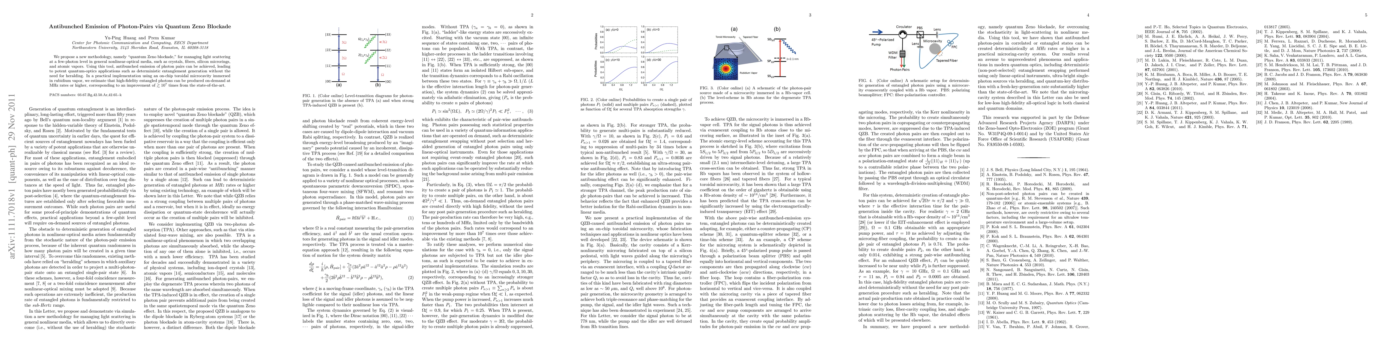 This paper introduces "quantum Zeno blockade" to control light scattering in nonlinear optical media, enabling antibunched photon-pair emission for quantum-optics applications like deterministic entanglement generation. Practical implementation in a toroidal microcavity with rubidium vapor suggests producing high-fidelity entangled photons on-demand at MHz rates, significantly improving current technology.