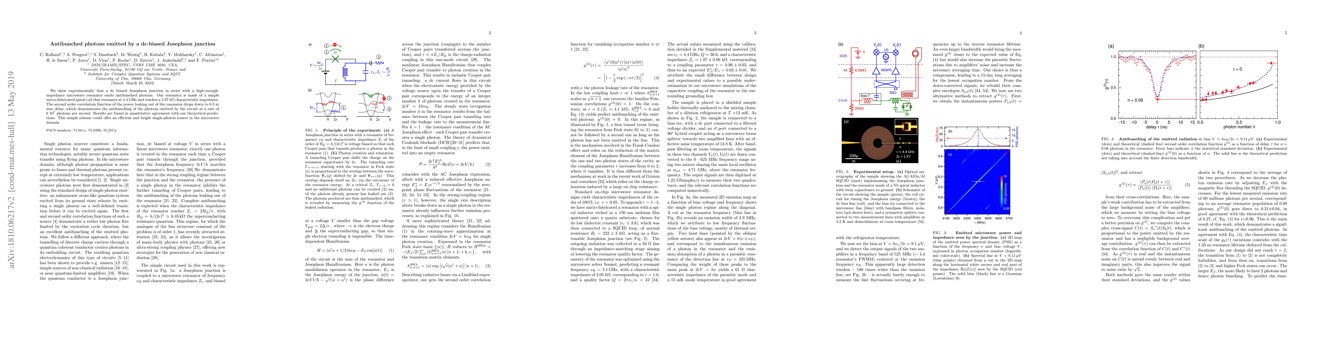We show experimentally that a dc biased Josephson junction in series with a high-enough impedance microwave resonator emits antibunched photons. Our resonator is made of a simple micro-fabricated spiral coil that resonates at 4.4 GHz and reaches a 1.97 k$\Omega$ characteristic impedance. The second order correlation function of the power leaking out of the resonator drops down to 0.3 at zero delay, which demonstrates the antibunching of the photons emitted by the circuit at a rate of 6 $10^7$ photons per second. Results are found in quantitative agreement with our theoretical predictions. This simple scheme could offer an efficient and bright single-photon source in the microwave domain.