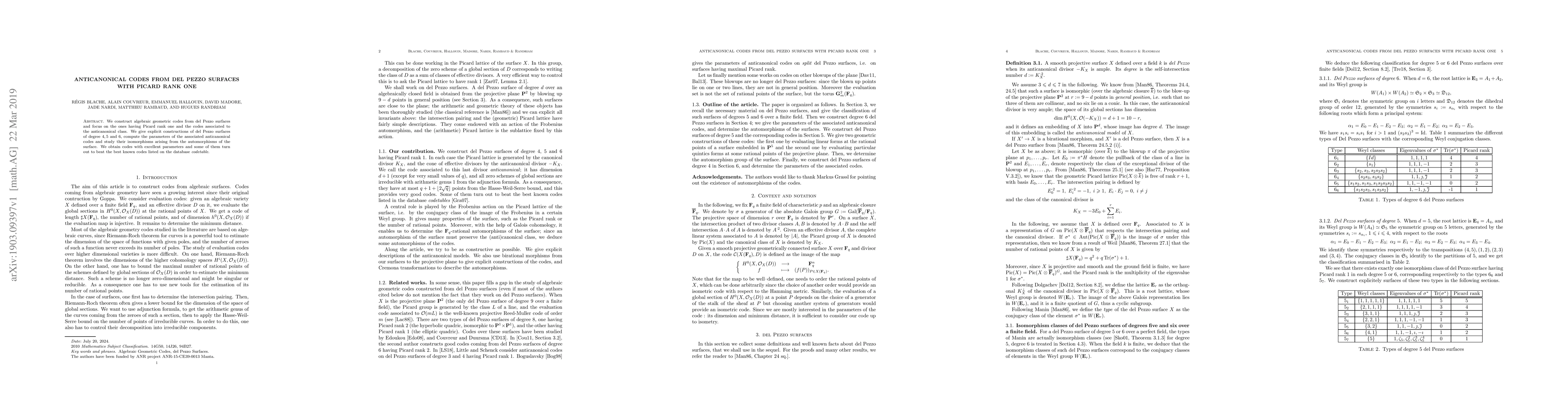 This paper constructs algebraic geometric codes from del Pezzo surfaces with Picard rank one, specifically focusing on those derived from the anticanonical class. It provides explicit constructions for degree 4, 5, and 6 surfaces, computes the parameters of the resulting codes, and explores their isomorphisms linked to surface automorphisms, resulting in codes that outperform existing ones in certain metrics.