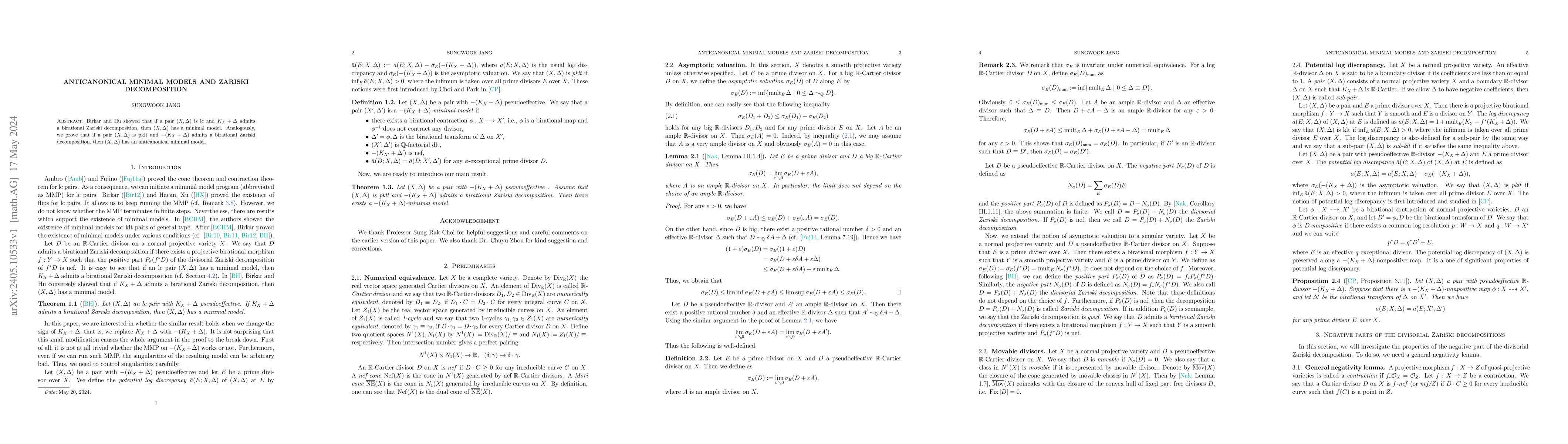 Summary: This paper proves that for pairs $(X,\Delta)$ with pklt singularities, if the negative canonical divisor admits a birational Zariski decomposition, then $(X,\Delta)$ possesses an anticanonical minimal model, extending results from Birkar and Hu for log canonical pairs.