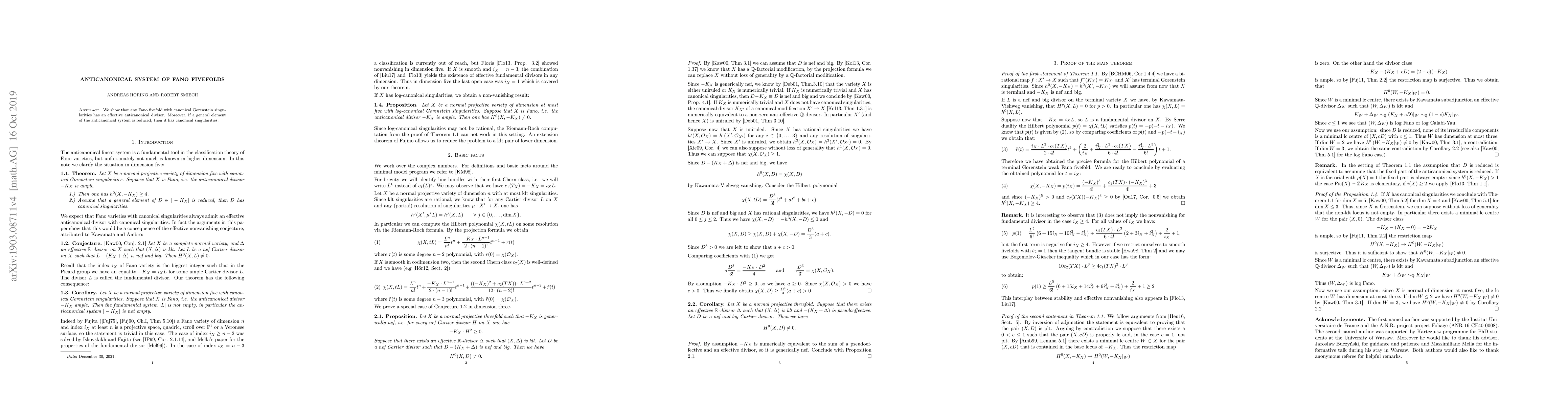 Summary: This paper demonstrates that any Fano fivefold with canonical Gorenstein singularities possesses an effective anticanonical divisor. It further establishes that if a general element of the anticanonical system is reduced, it will have canonical singularities, and confirms the nonvanishing of the anticanonical system under log canonical Gorenstein singularities.