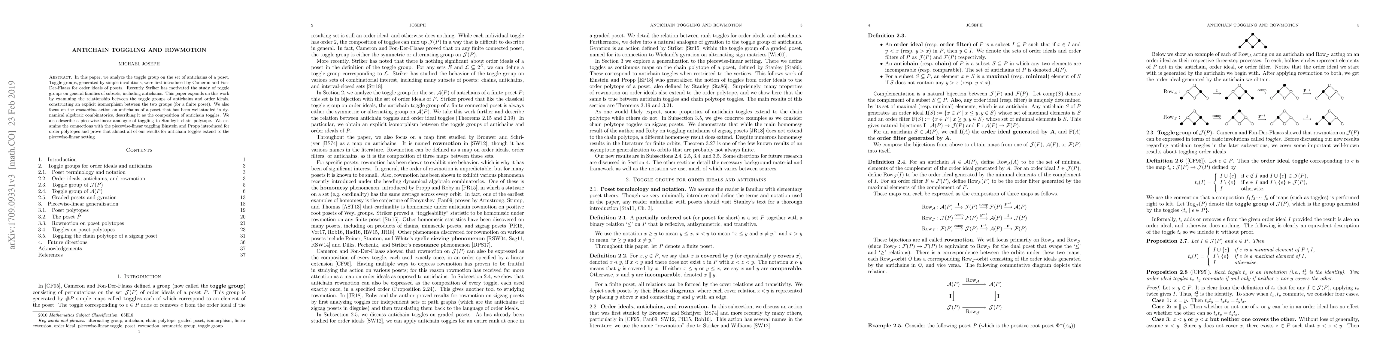 This paper explores the toggle group on antichains of a poset, establishing an isomorphism between toggle groups of antichains and order ideals, and connects the rowmotion action to antichain toggles. It also extends these findings to a piecewise-linear setting, linking antichain toggles to the toggling Einstein and Propp used for order polytopes.