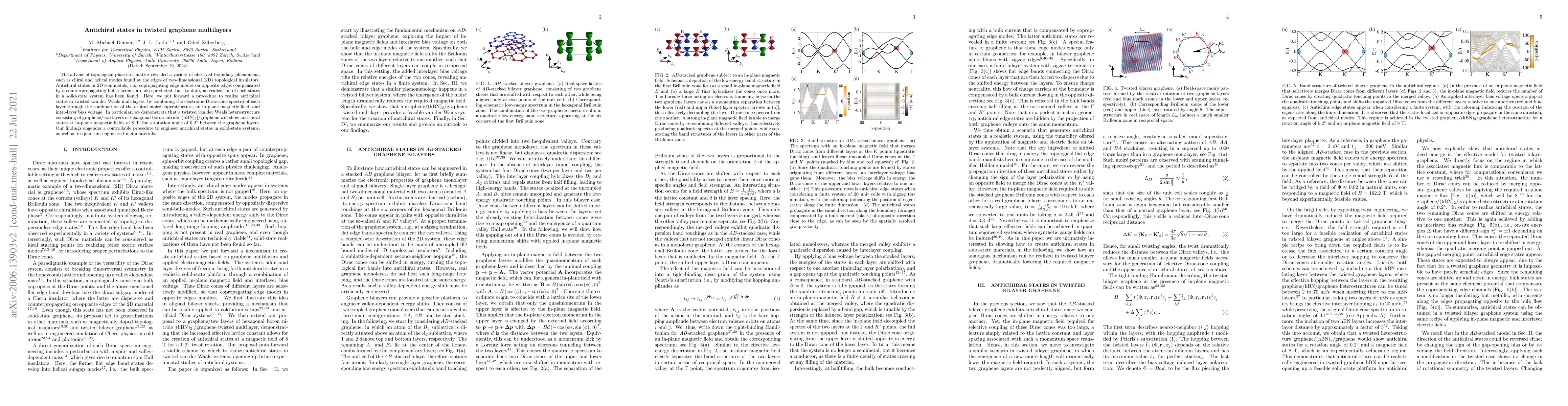 The advent of topological phases of matter revealed a variety of observed boundary phenomena, such as chiral and helical modes found at the edges of two-dimensional (2D) topological insulators. Antichiral states in 2D semimetals, i.e., copropagating edge modes on opposite edges compensated by a counterpropagating bulk current, are also predicted, but, to date, no realization of such states in a solid-state system has been found. Here, we put forward a procedure to realize antichiral states in twisted van der Waals multilayers, by combining the electronic Dirac-cone spectra of each layer through the combination of the orbital moir\'e superstructure, an in-plane magnetic field, and inter-layer bias voltage. In particular, we demonstrate that a twisted van der Waals heterostructure consisting of graphene/two layers of hexagonal boron nitride [(hBN)$_2$]/graphene will show antichiral states at in-plane magnetic fields of 8 T, for a rotation angle of 0.2$^{\circ}$ between the graphene layers. Our findings engender a controllable procedure to engineer antichiral states in solid-state systems, as well as in quantum engineered metamaterials.