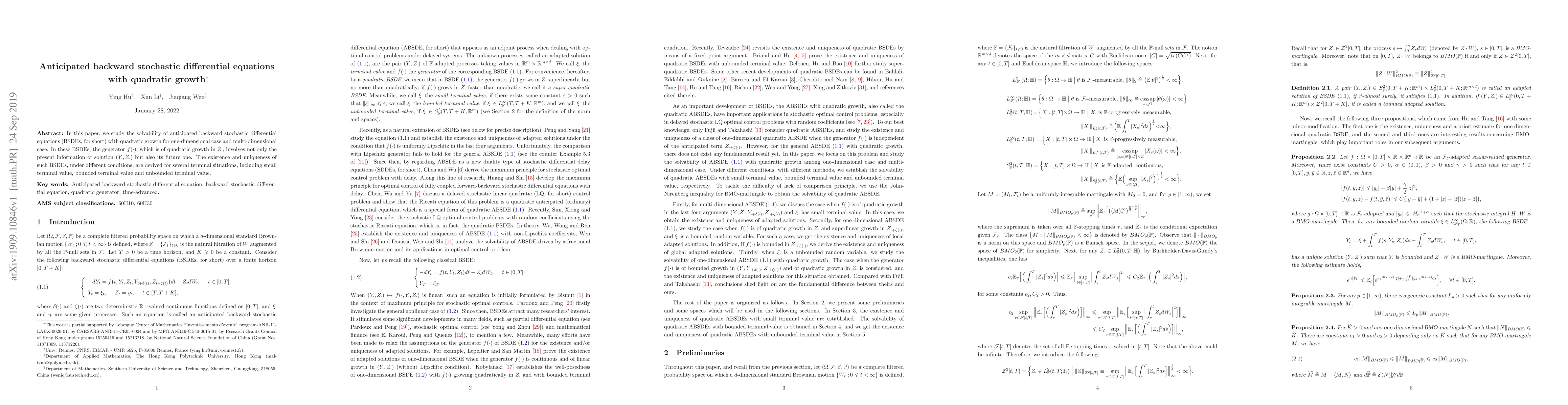 This paper investigates the solvability of anticipated backward stochastic differential equations (BSDEs) with quadratic growth, focusing on both one-dimensional and multi-dimensional cases. It establishes the existence and uniqueness of solutions under various terminal conditions, including small, bounded, and unbounded terminal values.