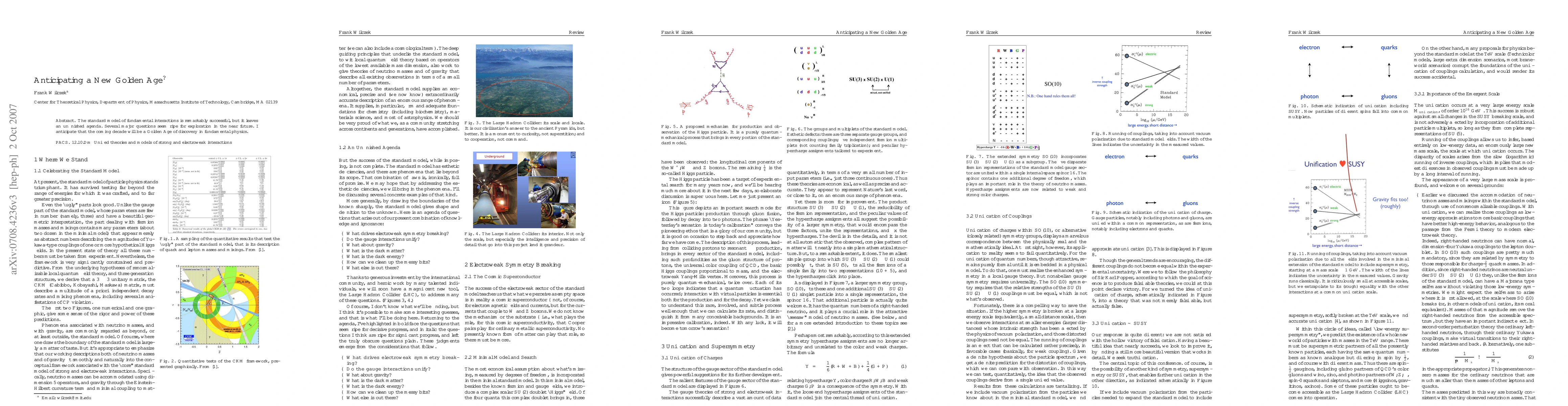 The paper discusses the potential for a new Golden Age in fundamental physics, focusing on the standard model's unfinished agenda and major questions ripe for exploration, particularly in the coming decade.