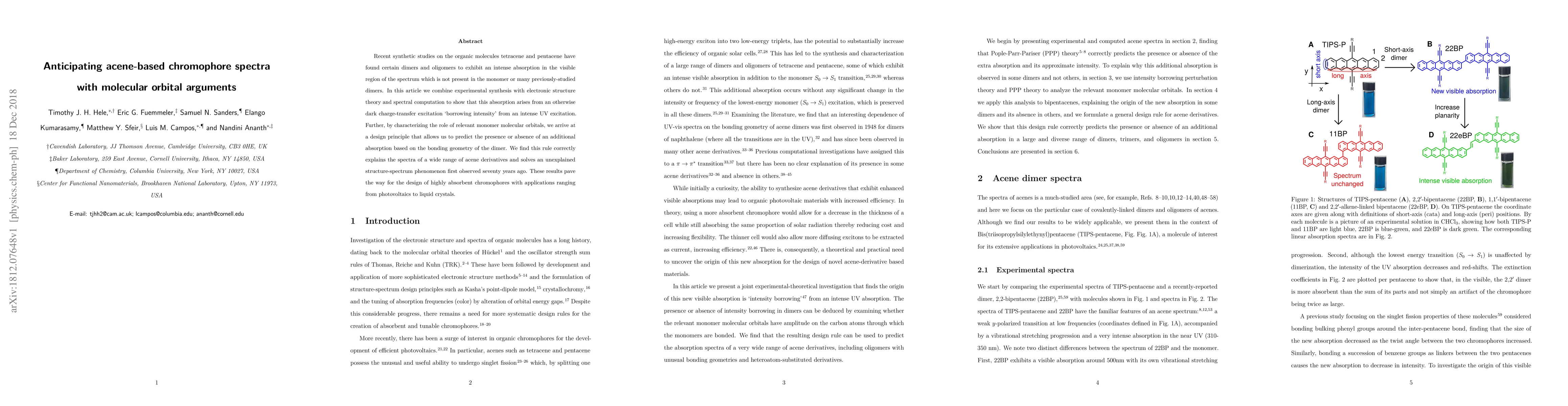 This paper combines experimental synthesis and electronic structure theory to explain the intense visible absorption in certain acene dimers and oligomers, attributing it to a "borrowing intensity" phenomenon from UV excitations. The study establishes a design principle based on molecular orbitals to predict additional absorptions, successfully explaining a long-standing structure-spectrum phenomenon and offering potential for advanced chromophore design.