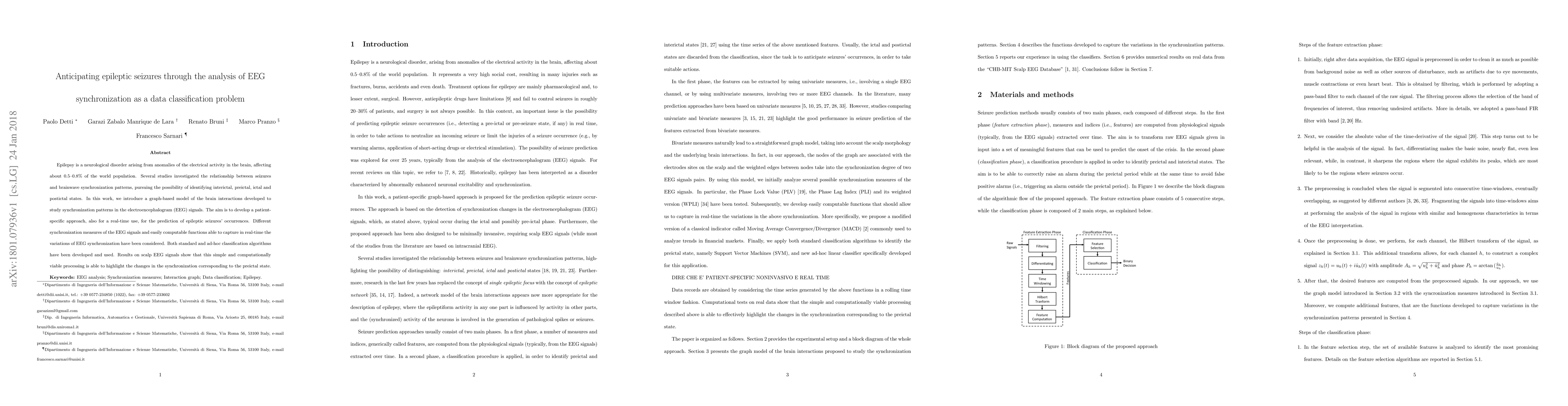 This paper proposes a graph-based model to analyze EEG synchronization patterns for predicting epileptic seizures. It develops patient-specific, real-time classification algorithms to identify preictal states based on variations in EEG synchronization, showing promising results on scalp EEG data.