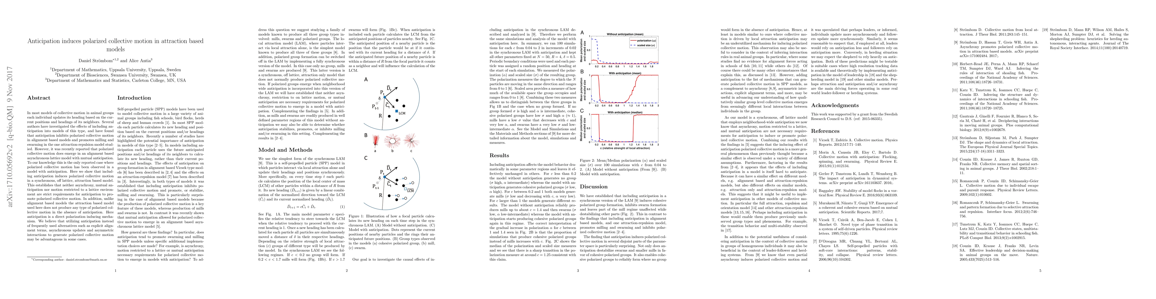 The paper introduces a novel approach to inducing polarized collective motion using anticipation in attraction-based models, challenging previous findings that anticipation inhibits polarized motion in such models.
