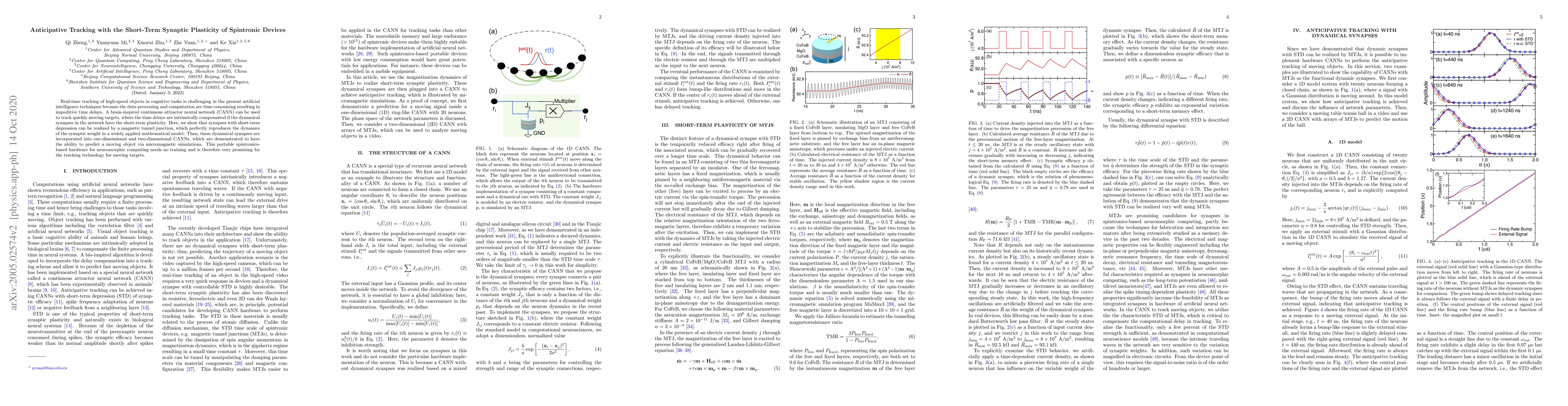 The research utilizes micromagnetic simulations to demonstrate that magnetic tunnel junctions (MTJs) can realize dynamical synapses with short-term plasticity (STD), crucial for continuous attractor neural networks (CANNs) to perform anticipative tracking of high-speed moving objects.