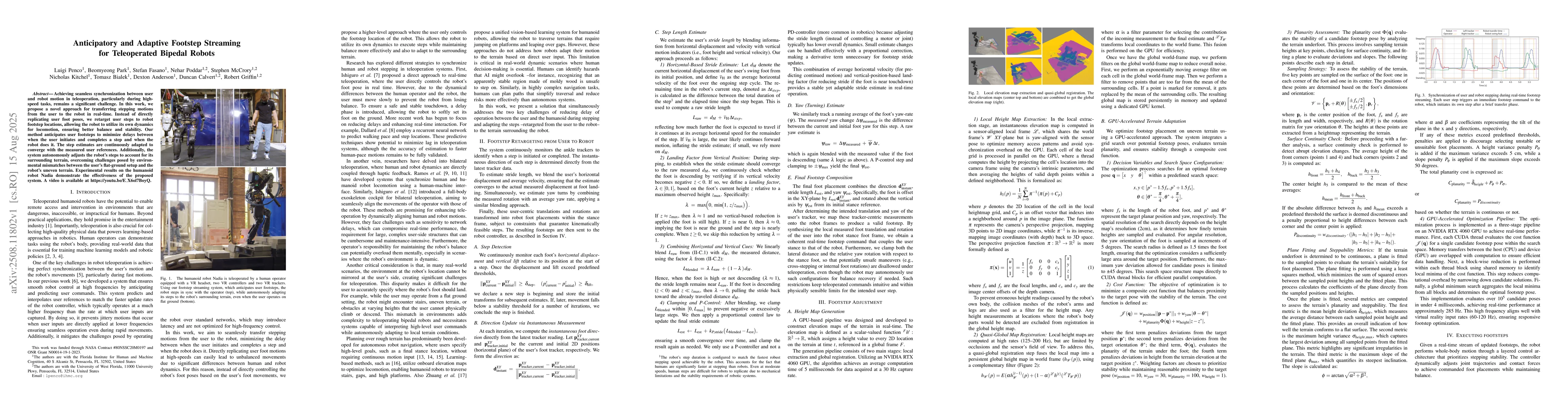 Achieving seamless synchronization between user and robot motion in teleoperation, particularly during high-speed tasks, remains a significant challenge. In this work, we propose a novel approach for transferring stepping motions from the user to the robot in real-time. Instead of directly replicating user foot poses, we retarget user steps to robot footstep locations, allowing the robot to utilize its own dynamics for locomotion, ensuring better balance and stability. Our method anticipates user footsteps to minimize delays between when the user initiates and completes a step and when the robot does it. The step estimates are continuously adapted to converge with the measured user references. Additionally, the system autonomously adjusts the robot's steps to account for its surrounding terrain, overcoming challenges posed by environmental mismatches between the user's flat-ground setup and the robot's uneven terrain. Experimental results on the humanoid robot Nadia demonstrate the effectiveness of the proposed system.