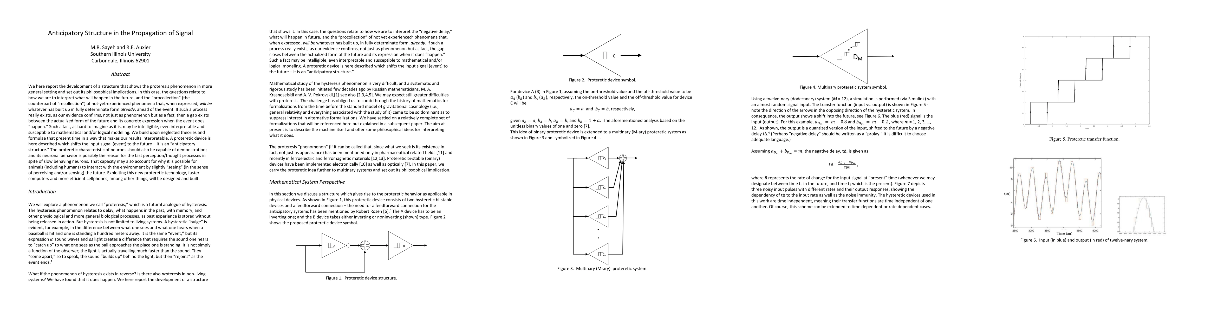 We here report the development of a structure that shows the proteresis phenomenon in more general setting and set out its philosophical implications. In this case, the questions relate to how we are to interpret what will happen in the future, and the procollection (the counterpart of recollection) of not-yet-experienced phenomena that, when expressed, will be whatever has built up in fully determinate form already, ahead of the event. If such a process really exists, as our evidence confirms, not just as phenomenon but as a fact, then a gap exists between the actualized form of the future and its concrete expression when the event does happen. Such a fact, as hard to imagine as it is, may be intelligible, even interpretable and susceptible to mathematical and/or logical modeling. We build upon neglected theories and formulae that present time in a way that makes our results interpretable. A proteretic device is here described which shifts the input signal (event) to the future; and it is an anticipatory structure. The proteretic characteristic of neurons should also be capable of demonstration; and its neuronal behavior is possibly the reason for the fast perception/thought processes in spite of slow behaving neurons. That capacity may also account for why it is possible for animals (including humans) to interact with the environment by slightly seeing (in the sense of perceiving and/or sensing) the future. Exploiting this new proteretic technology, faster computers and more efficient cellphones, among other things, will be designed and built.