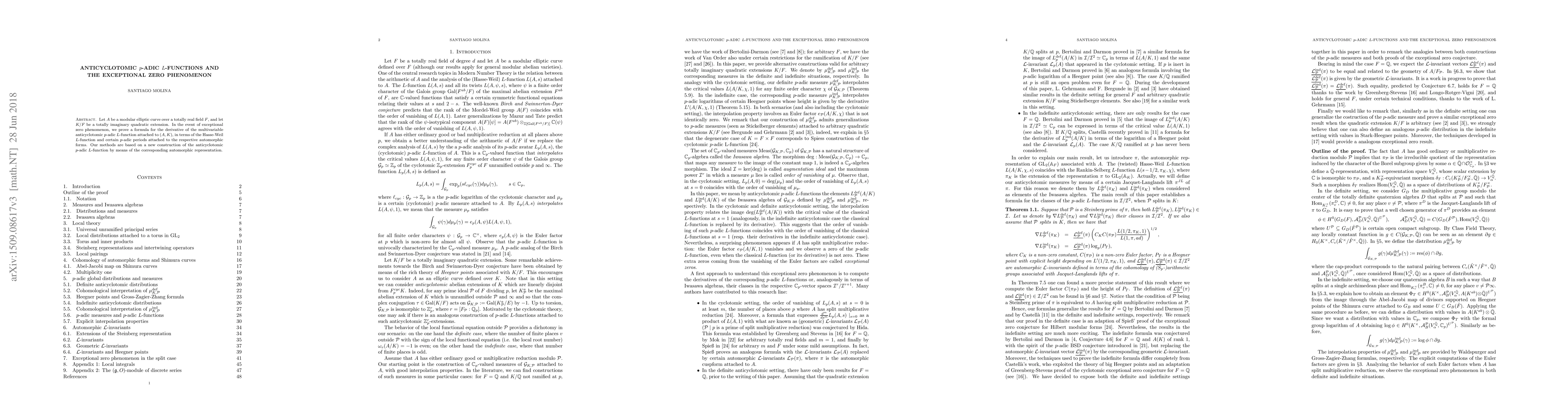 The paper proves a formula for the derivative of a multivariable anticyclotomic p-adic L-function linked to a modular elliptic curve and its quadratic extension, revealing an exceptional zero phenomenon, utilizing a novel construction tied to automorphic forms and representations.