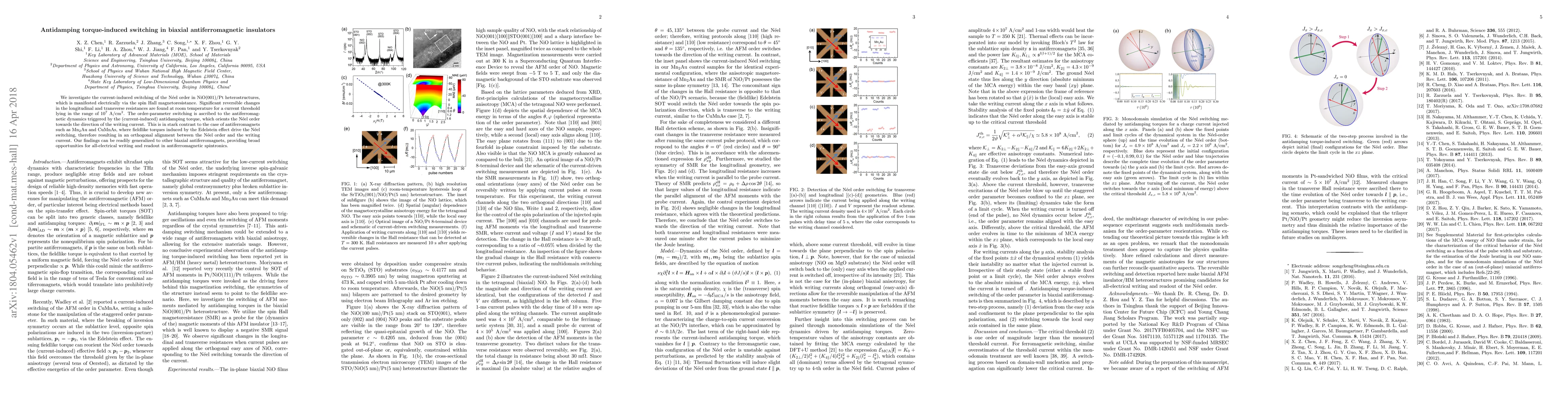 This study investigates the current-induced switching of the Neel order in NiO(001)/Pt heterostructures, revealing significant resistance changes at room temperature due to an antidamping torque. This contrasts with other antiferromagnets driven by field-like torques, offering potential for all-electrical control in antiferromagnetic spintronics.