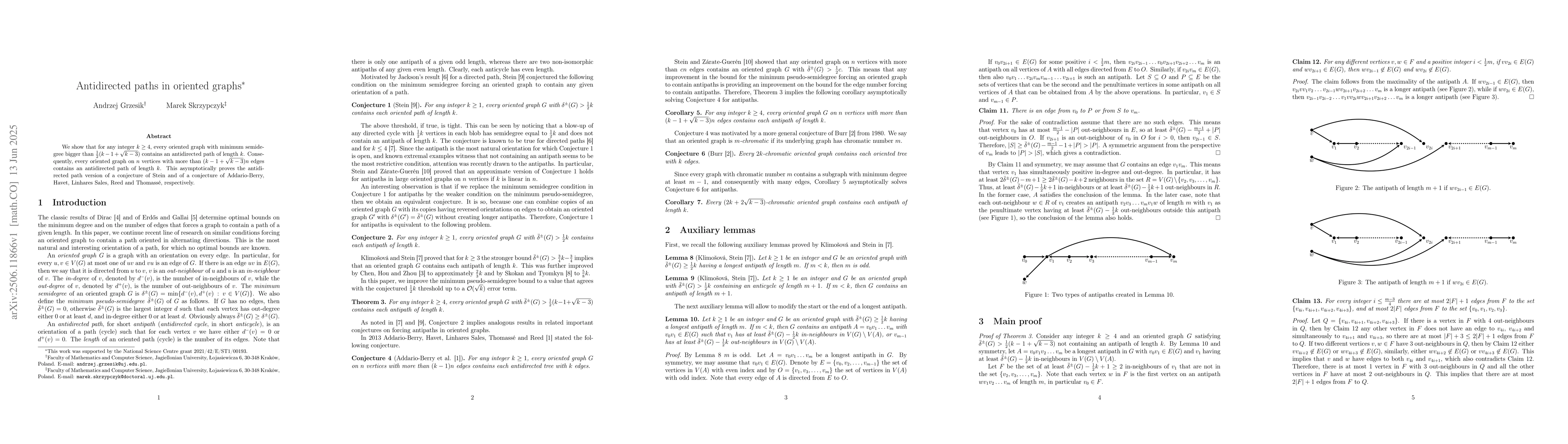 We show that for any integer $k \ge 4$, every oriented graph with minimum semidegree bigger than $\frac{1}{2}(k-1+\sqrt{k-3})$ contains an antidirected path of length $k$. Consequently, every oriented graph on $n$ vertices with more than $(k-1+\sqrt{k-3})n$ edges contains an antidirected path of length $k$. This asymptotically proves the antidirected path version of a conjecture of Stein and of a conjecture of Addario-Berry, Havet, Linhares Sales, Reed and Thomass\'e, respectively.