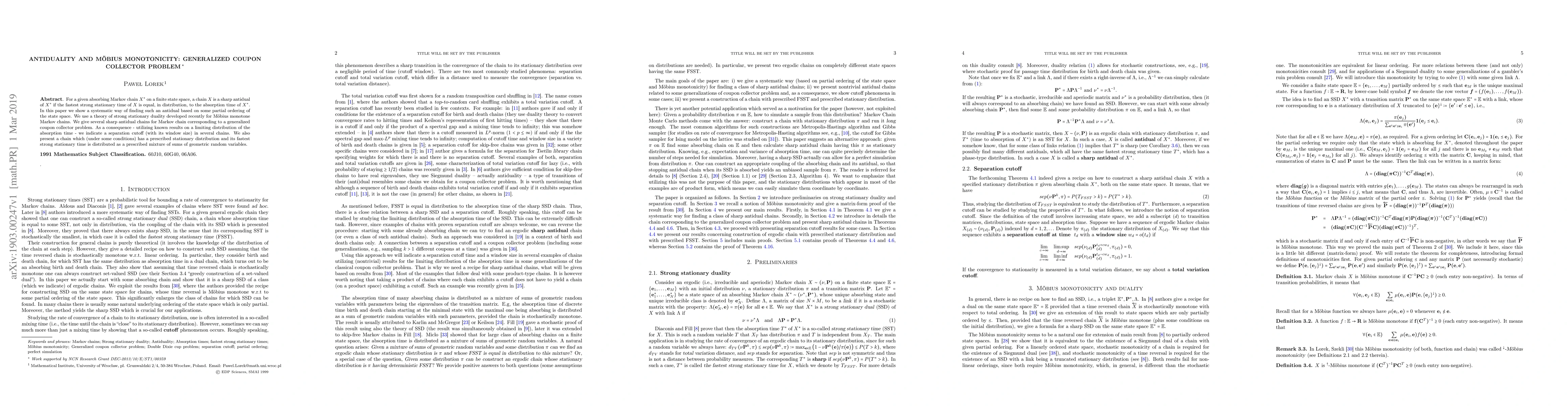 For a given absorbing Markov chain $X^*$ on a finite state space, a chain $X$ is a sharp antidual of $X^*$ if the fastest strong stationary time of $X$ is equal, in distribution, to the absorption time of $X^*$. In this paper we show a systematic way of finding such an antidual based on some partial ordering of the state space. We use a theory of strong stationary duality developed recently for M\"obius monotone Markov chains. We give several sharp antidual chains for Markov chain corresponding to a generalized coupon collector problem. As a consequence - utilizing known results on a limiting distribution of the absorption time - we indicate a separation cutoff (with its window size) in several chains. We also present a chain which (under some conditions) has a prescribed stationary distribution and its fastest strong stationary time is distributed as a prescribed mixture of sums of geometric random variables.