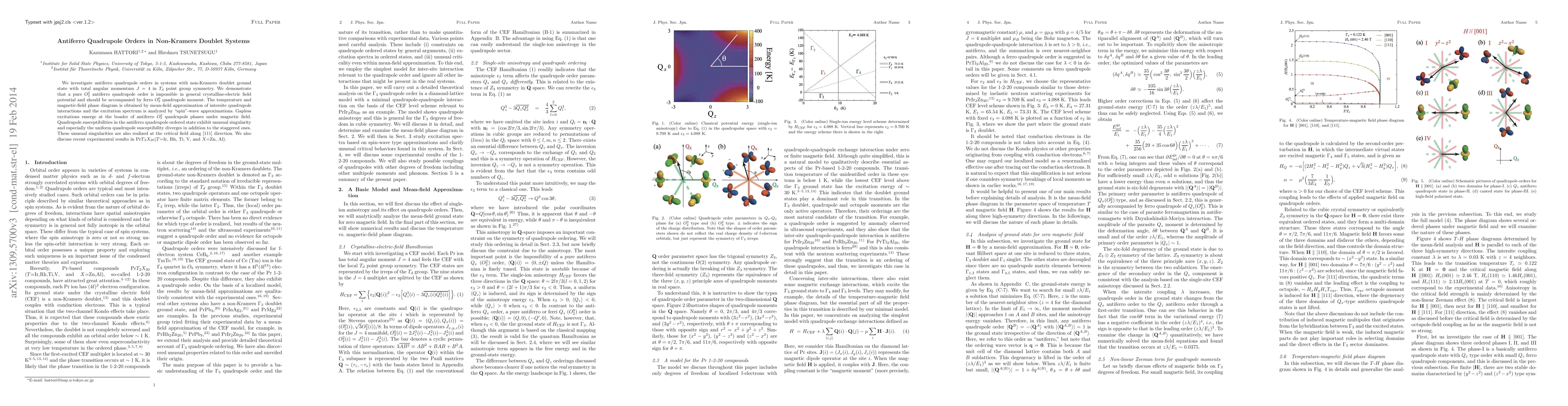 This paper explores antiferro quadrupole orders in non-Kramers doublet systems with J=4, revealing that pure O_2^2 antiferro quadrupole order is unachievable without accompanying ferro O_2^0 quadrupole moment. It discusses the temperature and magnetic-field phase diagram, gapless excitations, and unusual singularities in quadrupole susceptibilities, supported by experimental results in PrT_2X_{20} compounds.