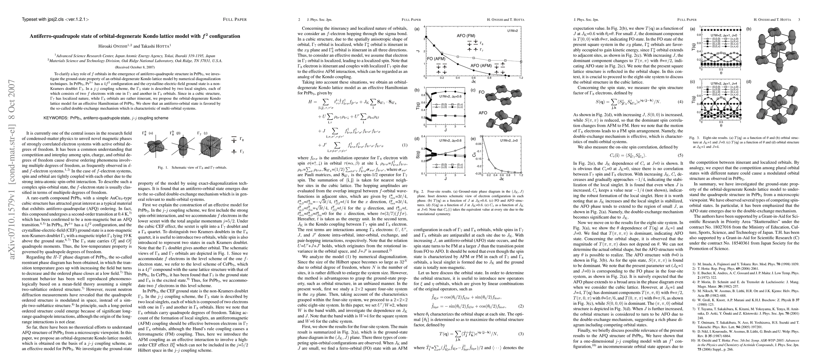 To clarify a key role of $f$ orbitals in the emergence of antiferro-quadrupole structure in PrPb$_{3}$, we investigate the ground-state property of an orbital-degenerate Kondo lattice model by numerical diagonalization techniques. In PrPb$_{3}$, Pr$^{3+}$ has a $4f^{2}$ configuration and the crystalline-electric-field ground state is a non-Kramers doublet $\Gamma_{3}$. In a $j$-$j$ coupling scheme, the $\Gamma_{3}$ state is described by two local singlets, each of which consists of two $f$ electrons with one in $\Gamma_{7}$ and another in $\Gamma_{8}$ orbitals. Since in a cubic structure, $\Gamma_{7}$ has localized nature, while $\Gamma_{8}$ orbitals are rather itinerant, we propose the orbital-degenerate Kondo lattice model for an effective Hamiltonian of PrPb$_{3}$. We show that an antiferro-orbital state is favored by the so-called double-exchange mechanism which is characteristic of multi-orbital systems.