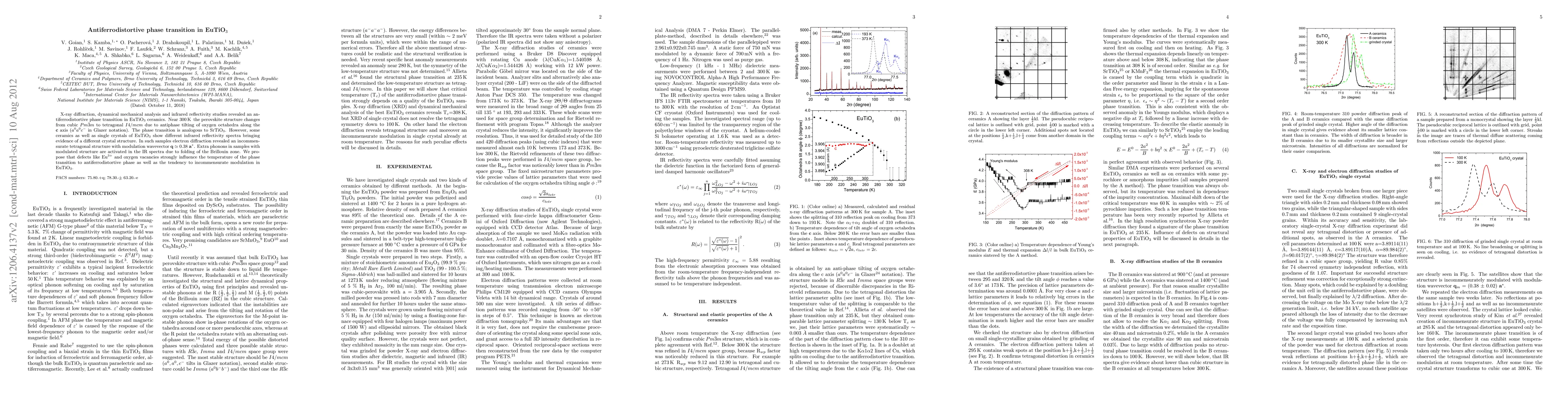 Research reveals an antiferrodistortive phase transition in EuTiO3 ceramics, transitioning from cubic to tetragonal perovskite structure near 300K due to oxygen octahedra tilting. Some samples exhibit an incommensurate tetragonal structure influenced by defects, altering infrared reflectivity and phonon activation.