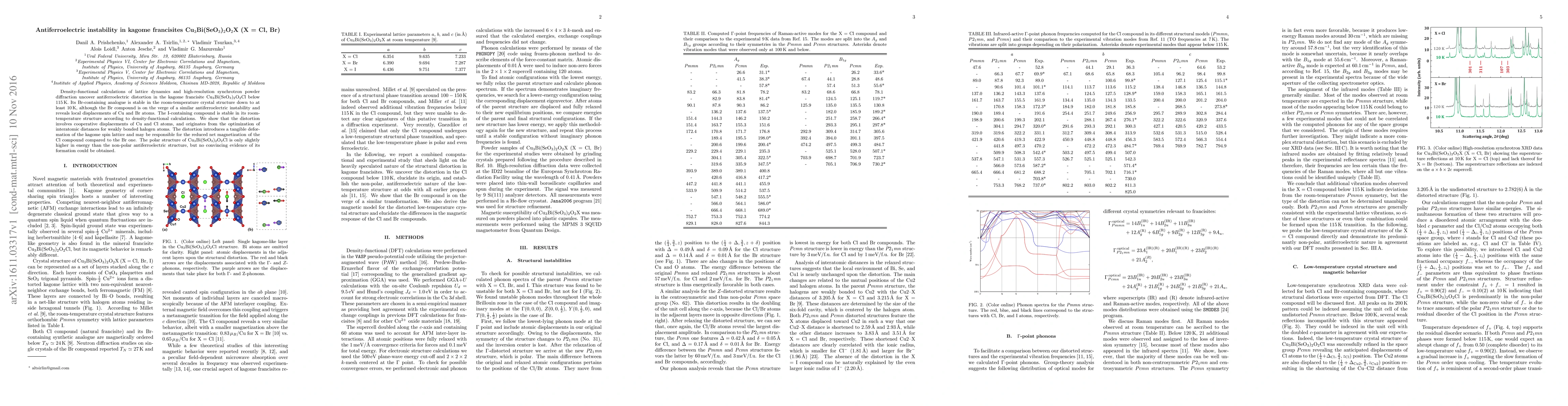 Researchers discovered antiferroelectric instability in two compounds, Cu3Bi(SeO3)2O2Cl and Cu3Bi(SeO3)2O2Br, with the Br compound stable at room temperature but on the verge of a similar instability. The distortion affects the spin lattice and may be responsible for reduced net magnetization.