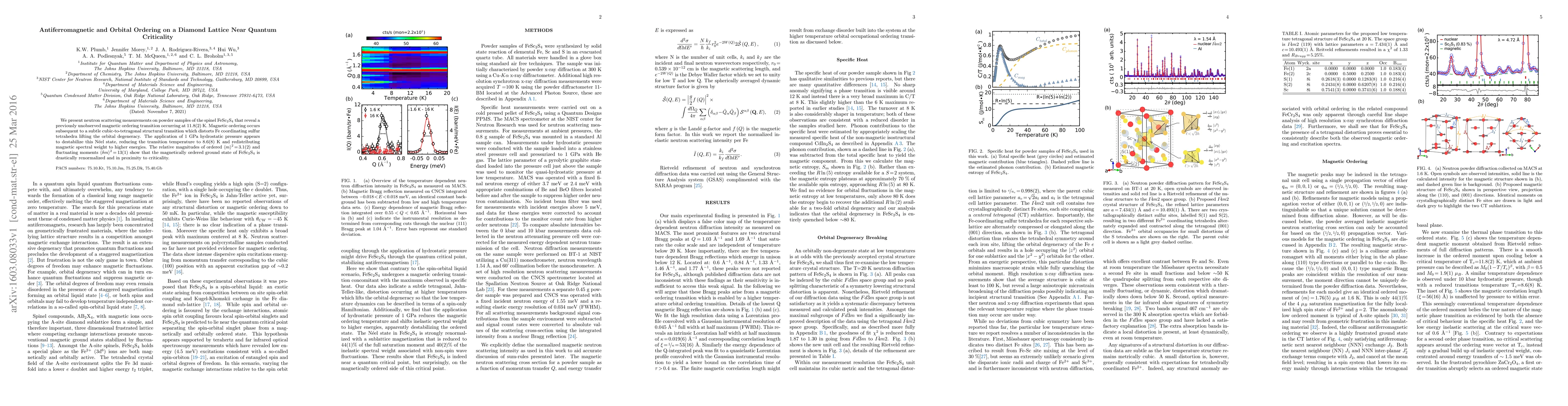 We present neutron scattering measurements on powder samples of the spinel FeSc2S4 that reveal a previously unobserved magnetic ordering transition occurring at 11.8(2)~K. Magnetic ordering occurs subsequent to a subtle cubic-to-tetragonal structural transition which distorts Fe coordinating sulfur tetrahedra lifting the orbital degeneracy. The application of 1~GPa hydrostatic pressure appears to destabilize this N\'eel state, reducing the transition temperature to 8.6(8)~K and redistributing magnetic spectral weight to higher energies. The relative magnitudes of ordered $\langle m \rangle^2\!=\!3.1(2)$ and fluctuating moments $\langle \delta m \rangle^2\!=\!13(1)$ show that the magnetically ordered ground state of FeSc2S4 is drastically renormalized and in proximity to criticality.