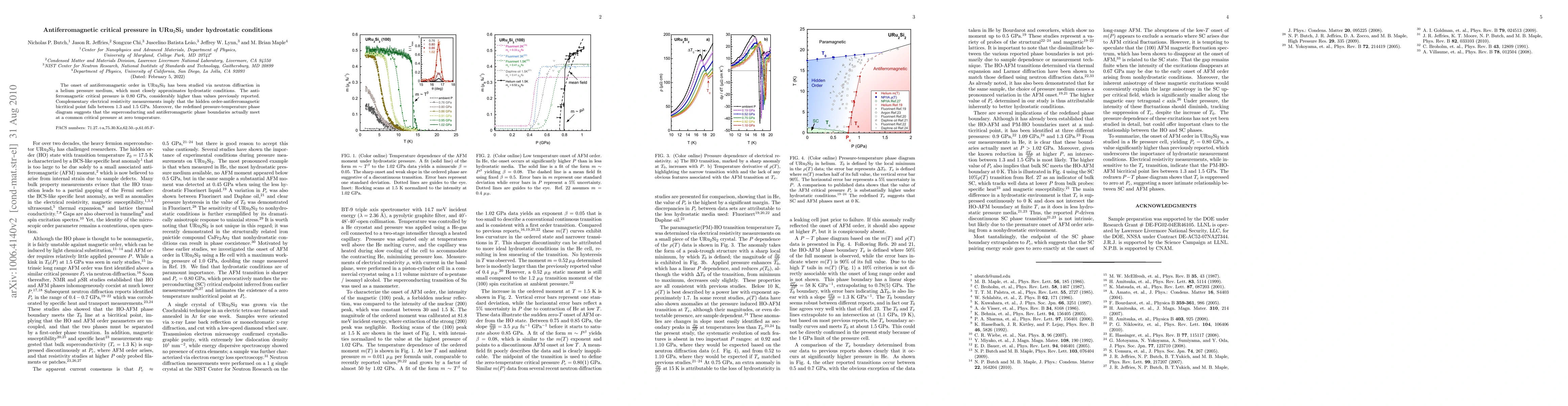 This study reveals that the antiferromagnetic critical pressure in URu2Si2 is 0.80 GPa under hydrostatic conditions, significantly higher than earlier reports. Electrical resistivity measurements suggest the hidden order-antiferromagnetic bicritical point exceeds 1.02 GPa, indicating a common critical pressure for superconductivity and antiferromagnetism at zero temperature.