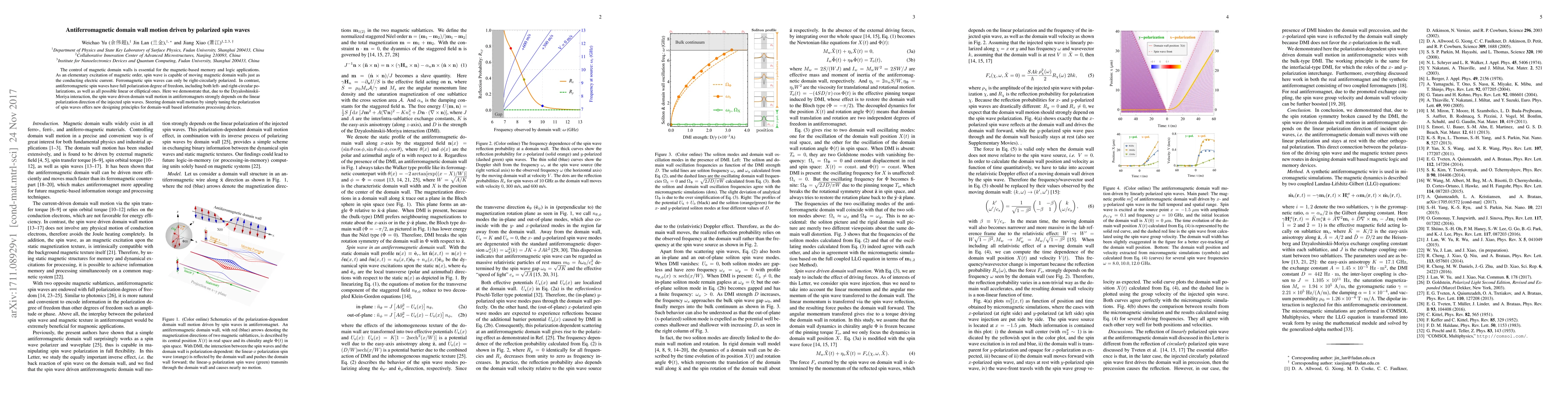 The paper demonstrates that antiferromagnetic domain wall motion can be controlled by polarized spin waves due to the Dzyaloshinskii-Moriya interaction, with the direction of linear polarization determining the wall movement, offering novel design principles for domain-wall based information processing devices.