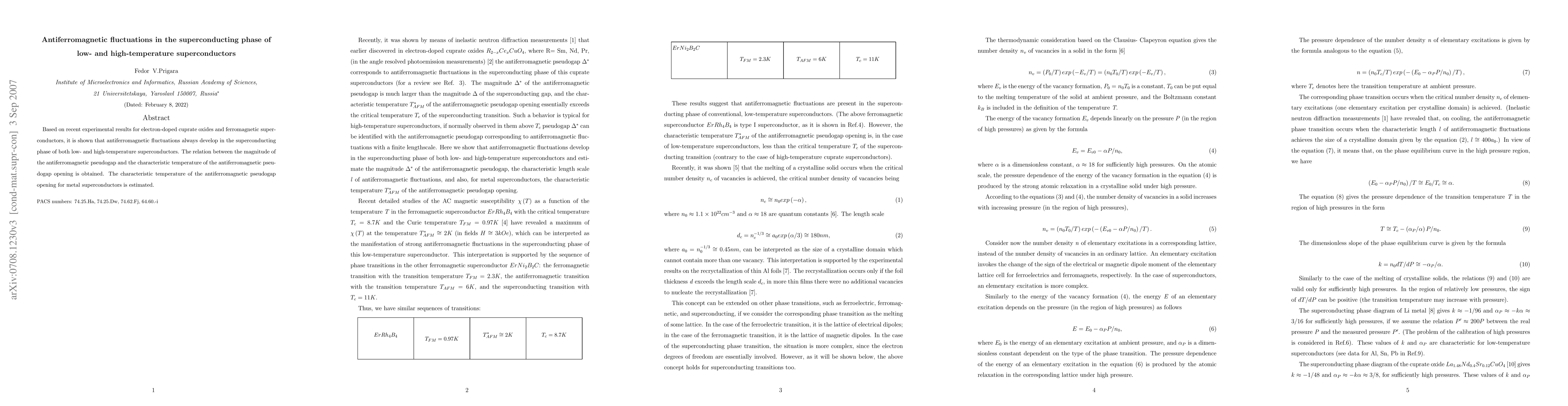 This paper demonstrates that antiferromagnetic fluctuations occur in both low- and high-temperature superconductors, using electron-doped cuprate oxides and ferromagnetic superconductors as examples. It also establishes a relationship between the antiferromagnetic pseudogap magnitude and the temperature of its opening, estimating this characteristic temperature for metal superconductors.