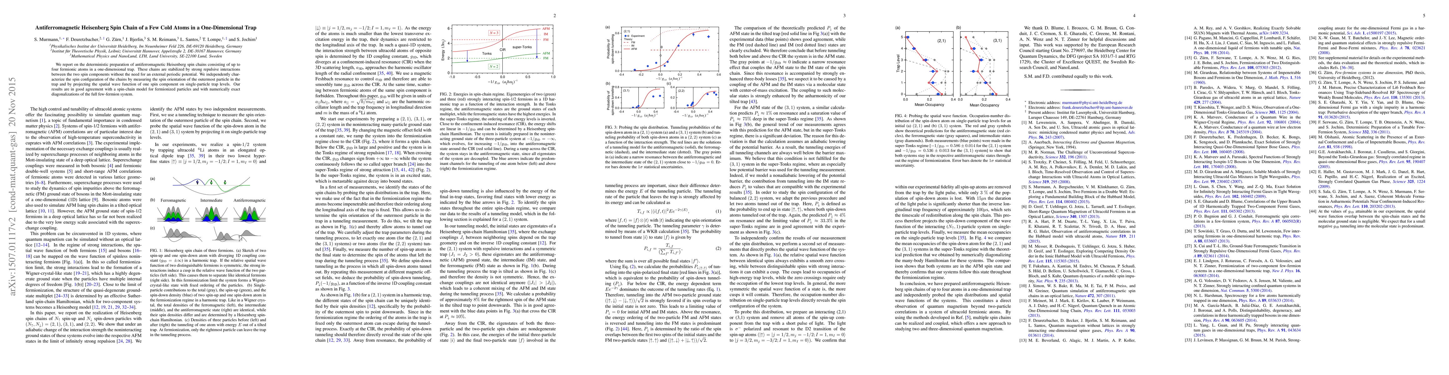 Researchers have successfully created antiferromagnetic Heisenberg spin chains of up to four cold atoms in a one-dimensional trap without external periodic potential.