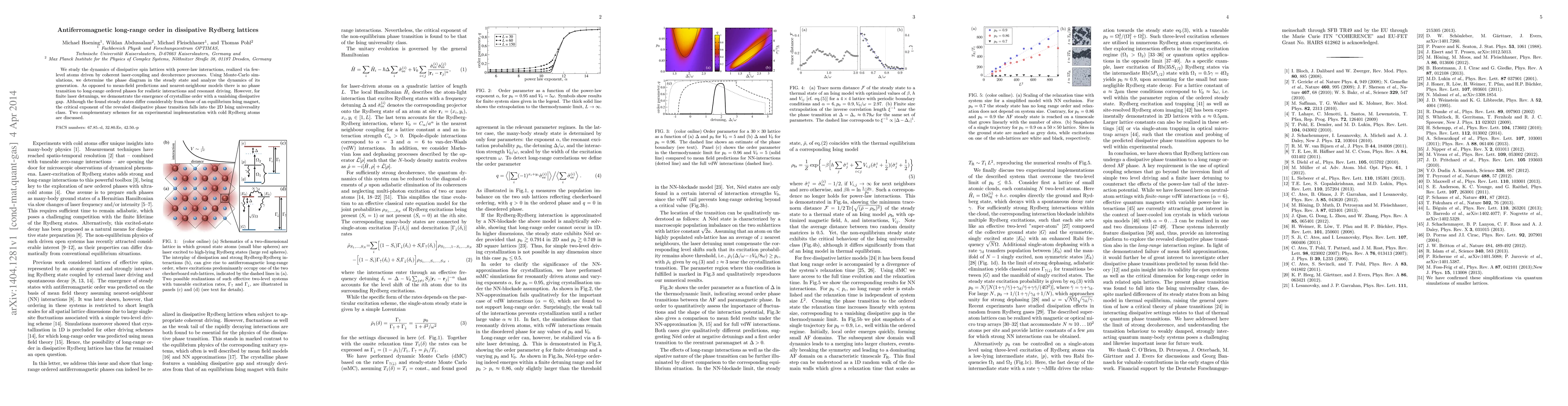Researchers discovered that dissipative Rydberg lattices exhibit long-range antiferromagnetic order without a phase transition for realistic interactions, but with the emergence of crystalline order at finite laser detunings.
