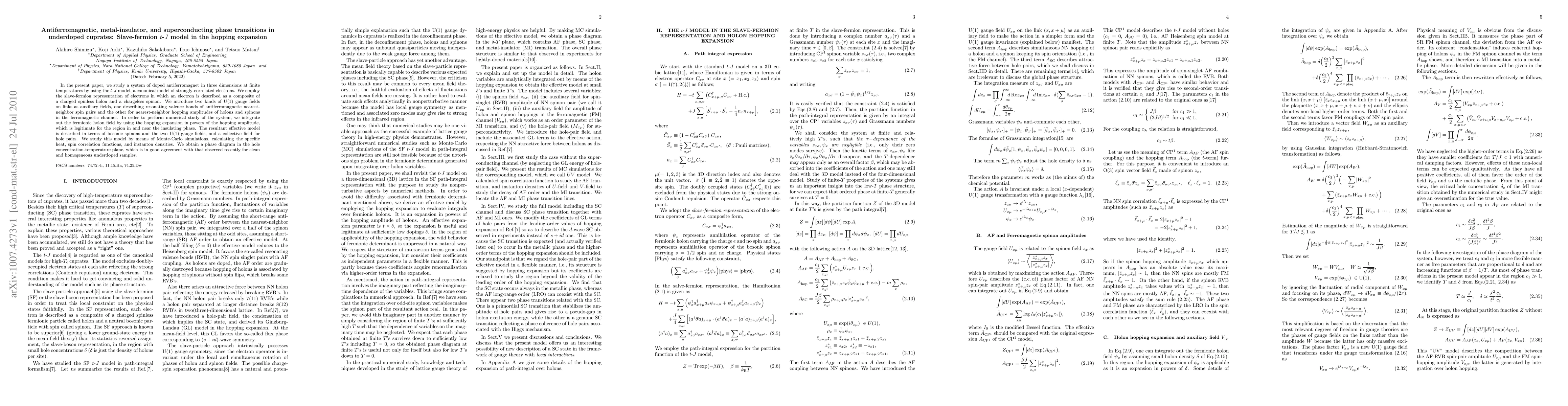 In the present paper, we study a system of doped antiferromagnet in three dimensions at finite temperatures by using the t-J model, a canonical model of strongly-correlated electrons. We employ the slave-fermion representation of electrons in which an electron is described as a composite of a charged spinless holon and a chargeless spinon. We introduce two kinds of U(1) gauge fields on links as auxiliary fields, one describing resonating valence bonds of antiferromagnetic nearest-neighbor spin pairs and the other for nearest-neighbor hopping amplitudes of holons and spinons in the ferromagnetic channel. In order to perform numerical study of the system, we integrate out the fermionic holon field by using the hopping expansion in powers of the hopping amplitude, which is legitimate for the region in and near the insulating phase. The resultant effective model is described in terms of bosonic spinons and the two U(1) gauge fields, and a collective field for hole pairs. We study this model by means of Monte-Carlo simulations, calculating the specific heat, spin correlation functions, and instanton densities. We obtain a phase diagram in the hole concentration-temperature plane, which is in good agreement with that observed recently for clean and homogeneous underdoped samples.