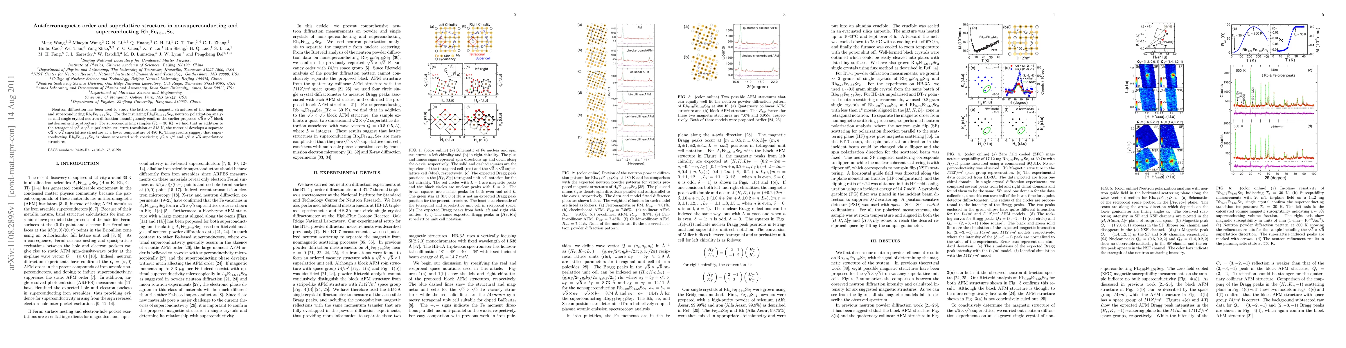 Researchers used neutron diffraction to study Rb_yFe_1.6+xSe_2, finding a phase-separated superconducting material with two coexisting lattice structures: sqrt(5) x sqrt(5) and sqrt(2) x sqrt(2).