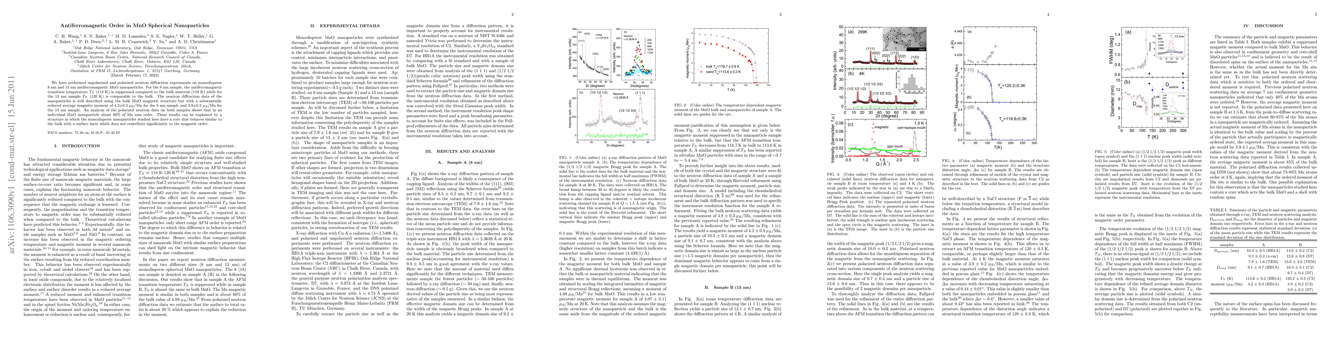Researchers studied antiferromagnetic MnO nanoparticles and found that smaller particles had a lower transition temperature and reduced magnetic moment compared to bulk material, suggesting a core-surface structure.