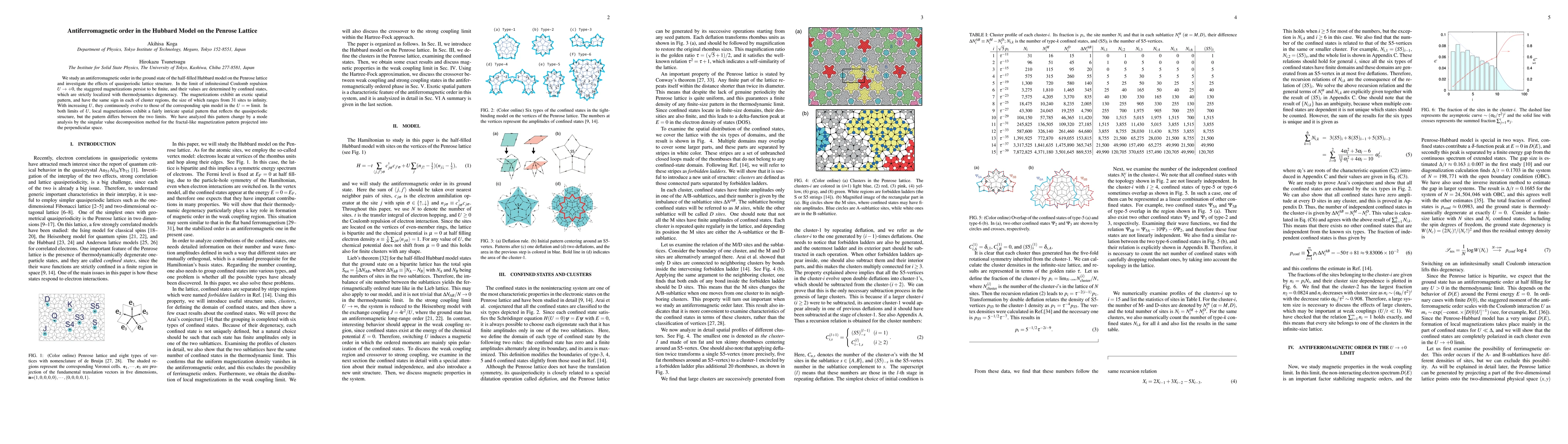 We study an antiferromagnetic order in the ground state of the half-filled Hubbard model on the Penrose lattice and investigate the effects of quasiperiodic lattice structure. In the limit of infinitesimal Coulomb repulsion $U \rightarrow +0$, the staggered magnetizations persist to be finite, and their values are determined by confined states, which are strictly localized with thermodynamics degeneracy. The magnetizations exhibit an exotic spatial pattern, and have the same sign in each of cluster regions, the size of which ranges from 31 sites to infinity. With increasing $U$, they continuously evolve to those of the corresponding spin model in the $U=\infty$ limit. In both limits of $U$, local magnetizations exhibit a fairly intricate spatial pattern that reflects the quasiperiodic structure, but the pattern differs between the two limits. We have analyzed this pattern change by a mode analysis by the singular value decomposition method for the fractal-like magnetization pattern projected into the perpendicular space.