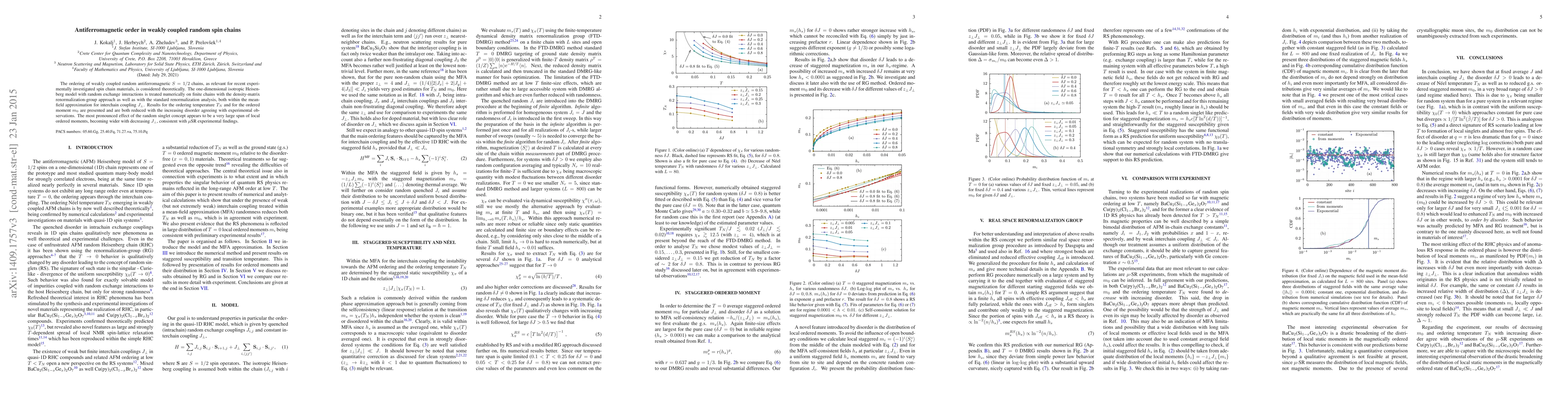 The ordering of weakly coupled random antiferromagnetic $S=1/2$ chains, as relevant for recent experimentally investigated spin chain materials, is considered theoretically. The one-dimensional isotropic Heisenberg model with random exchange interactions is treated numerically on finite chains with the density-matrix renormalization-group approach as well as with the standard renormalization analysis, both within the mean-field approximation for interchain coupling $J_{\perp}$. Results for the ordering temperature $T_N$ and for the ordered moment $m_0$ are presented and are both reduced with the increasing disorder agreeing with experimental observations. The most pronounced effect of the random singlet concept appears to be a very large span of local ordered moments, becoming wider with decreasing $J_{\perp}$, consistent with $\mu$SR experimental findings.