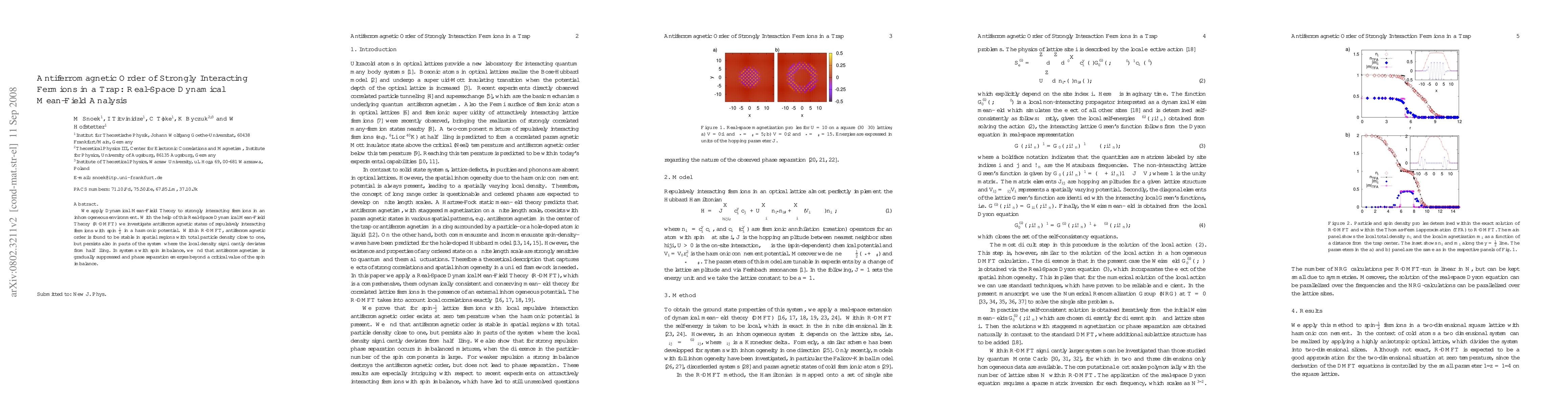 This paper uses Real-Space Dynamical Mean-Field Theory to study antiferromagnetic order in strongly interacting spin 1/2 fermions within a harmonic trap. It finds that antiferromagnetism is stable near half-filling but also persists in regions of different density, while spin imbalance leads to its suppression and phase separation.