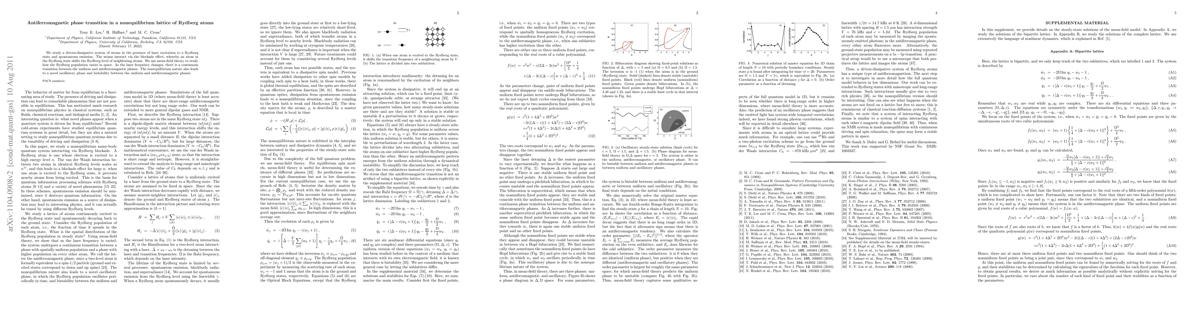 This paper investigates the antiferromagnetic phase transition in a nonequilibrium lattice of Rydberg atoms driven by laser excitation, revealing a continuous transition between uniform and antiferromagnetic phases, along with a novel oscillatory phase and bistability due to the blockade effect.