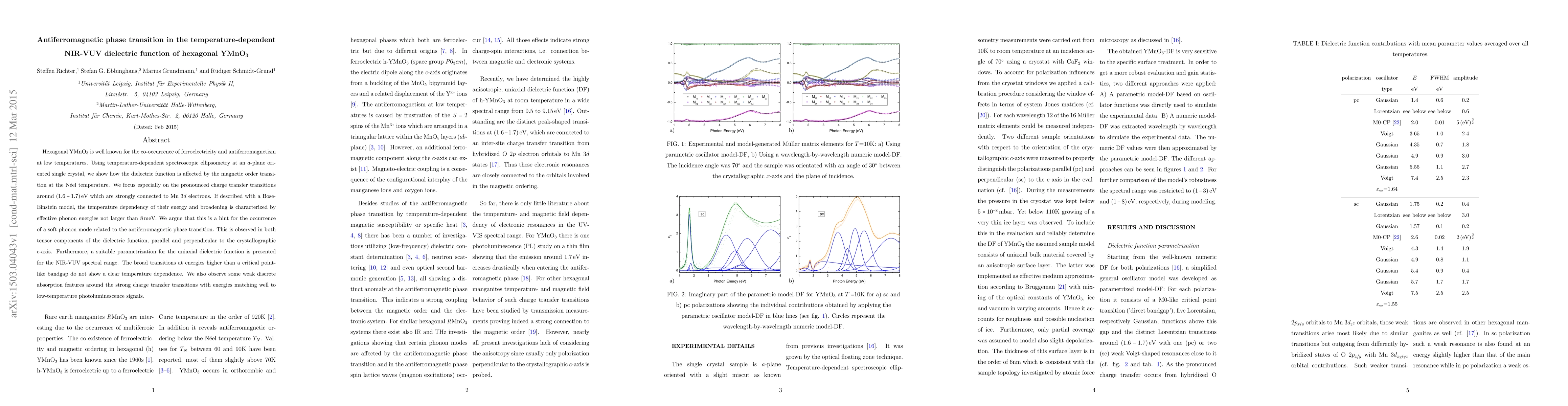 Hexagonal YMnO$_3$ is well known for the co-occurrence of ferroelectricity and antiferromagnetism at low temperatures. Using temperature-dependent spectroscopic ellipsometry at an $a$-plane oriented single crystal, we show how the dielectric function is affected by the magnetic order transition at the N\'eel temperature. We focus especially on the pronounced charge transfer transitions around (1.6-1.7)eV which are strongly connected to Mn 3$d$ electrons. If described with a Bose-Einstein model, the temperature dependency of their energy and broadening is characterized by effective phonon energies not larger than 8meV. We argue that this is a hint for the occurrence of a soft phonon mode related to the antiferromagnetic phase transition. This is observed in both tensor components of the dielectric function, parallel and perpendicular to the crystallographic $c$-axis. Furthermore, a suitable parametrization for the uniaxial dielectric function is presented for the NIR-VUV spectral range. The broad transitions at energies higher than a critical point-like bandgap do not show a clear temperature dependence. We also observe some weak discrete absorption features around the strong charge transfer transitions with energies matching well to low-temperature photoluminescence signals.