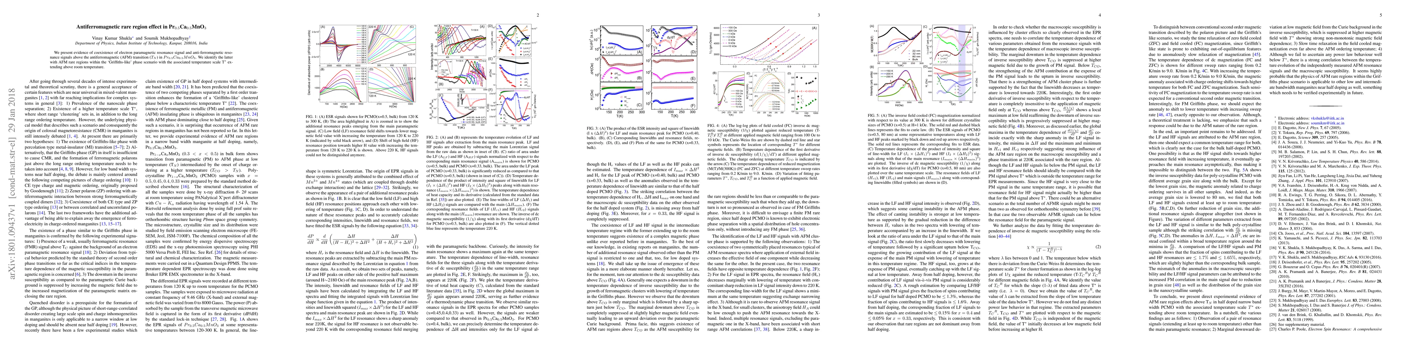 We present evidence of coexistence of electron paramagnetic resonance signal and anti-ferromagnetic resonance signals above the anti-ferromagnetic (AFM) transition ($T_N$) in $Pr_{0.5}Ca_{0.5}MnO_3$. We identify the latter with AFM rare regions within the Griffiths-like phase scenario with the associated temperature scale $T^\ast$ extending above room temperature.