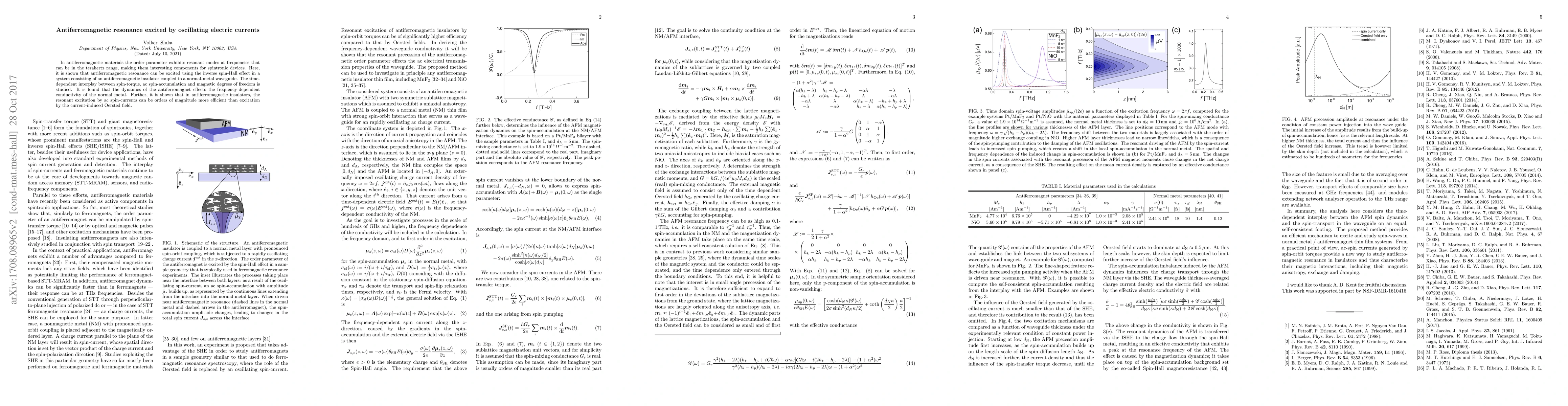This paper demonstrates that antiferromagnetic resonance in insulators can be excited via the inverse spin-Hall effect in a coupled normal-metal waveguide system, revealing that ac spin-currents are significantly more efficient than Oersted fields for excitation. The study also explores the dynamic interaction between spin-torque and magnetic degrees of freedom, affecting the normal metal's frequency-dependent conductivity.