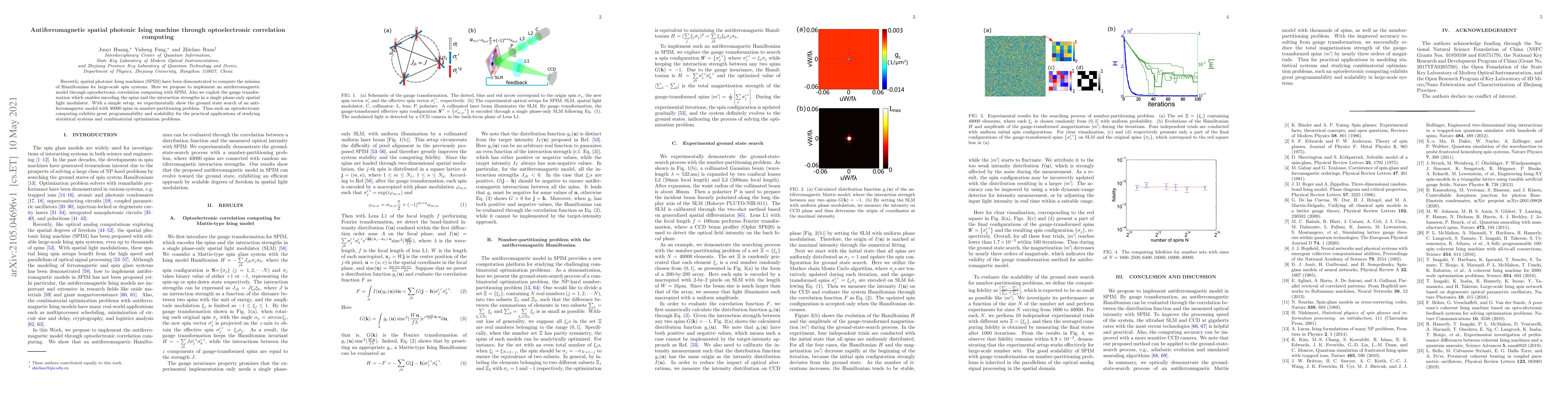 Recently, spatial photonic Ising machines (SPIM) have been demonstrated to compute the minima of Hamiltonians for large-scale spin systems. Here we propose to implement an antiferromagnetic model through optoelectronic correlation computing with SPIM. Also we exploit the gauge transformation which enables encoding the spins and the interaction strengths in a single phase-only spatial light modulator. With a simple setup, we experimentally show the ground state search of an antiferromagnetic model with $40000$ spins in number-partitioning problem. Thus such an optoelectronic computing exhibits great programmability and scalability for the practical applications of studying statistical systems and combinatorial optimization problems.