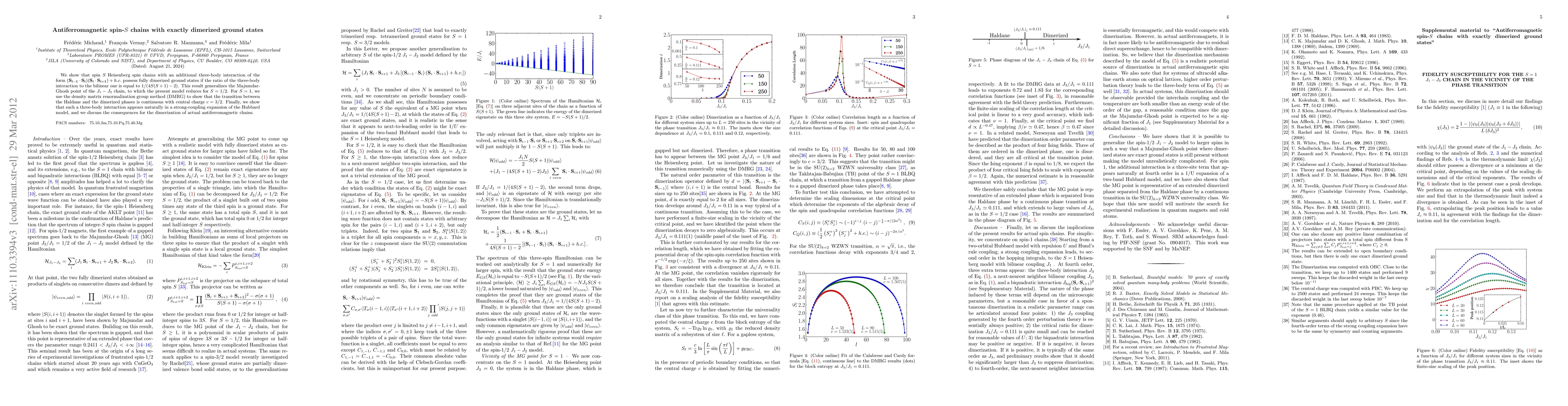 The paper presents a novel generalization of the Majumdar-Ghosh point to larger spins, derives an effective J1-J3 model from a two-orbital Hubbard model, and demonstrates the continuous transition between Haldane and dimerized phases for S=1 using DMRG calculations.