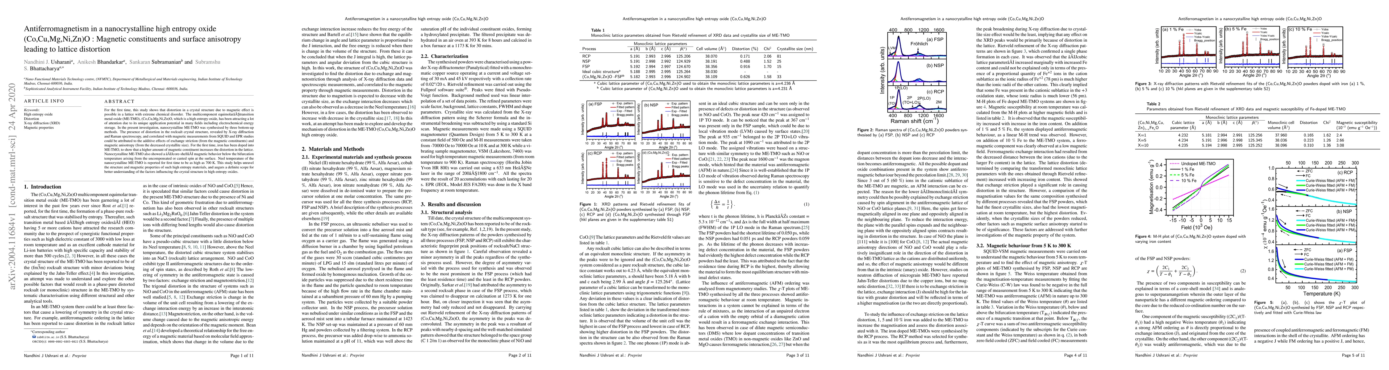 Researchers discovered antiferromagnetism in a nanocrystalline high entropy oxide (Co,Cu,Mg,Ni,Zn)O, showing for the first time that distortion in crystal structure can occur due to magnetic effects. The study's findings could help understand factors influencing crystal structure in high entropy oxides.