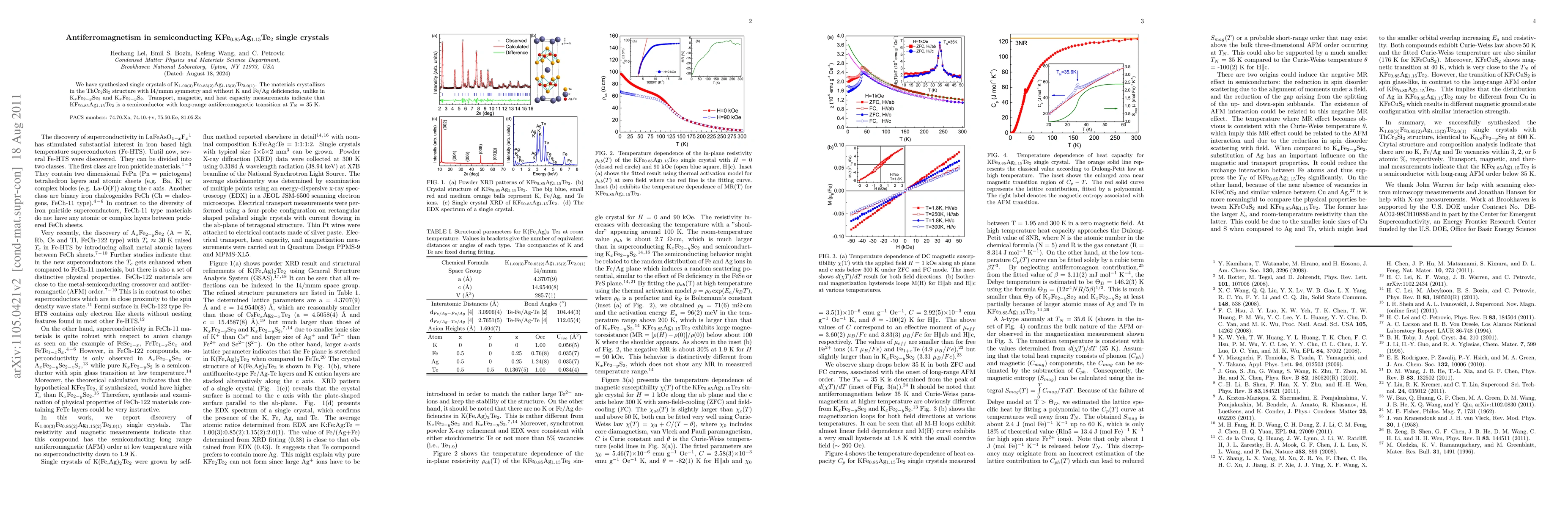 Researchers have synthesized single crystals of KFe0.85Ag1.15Te2 with a ThCr2Si2 structure and found it to be a semiconductor that exhibits long-range antiferromagnetic behavior at 35K.